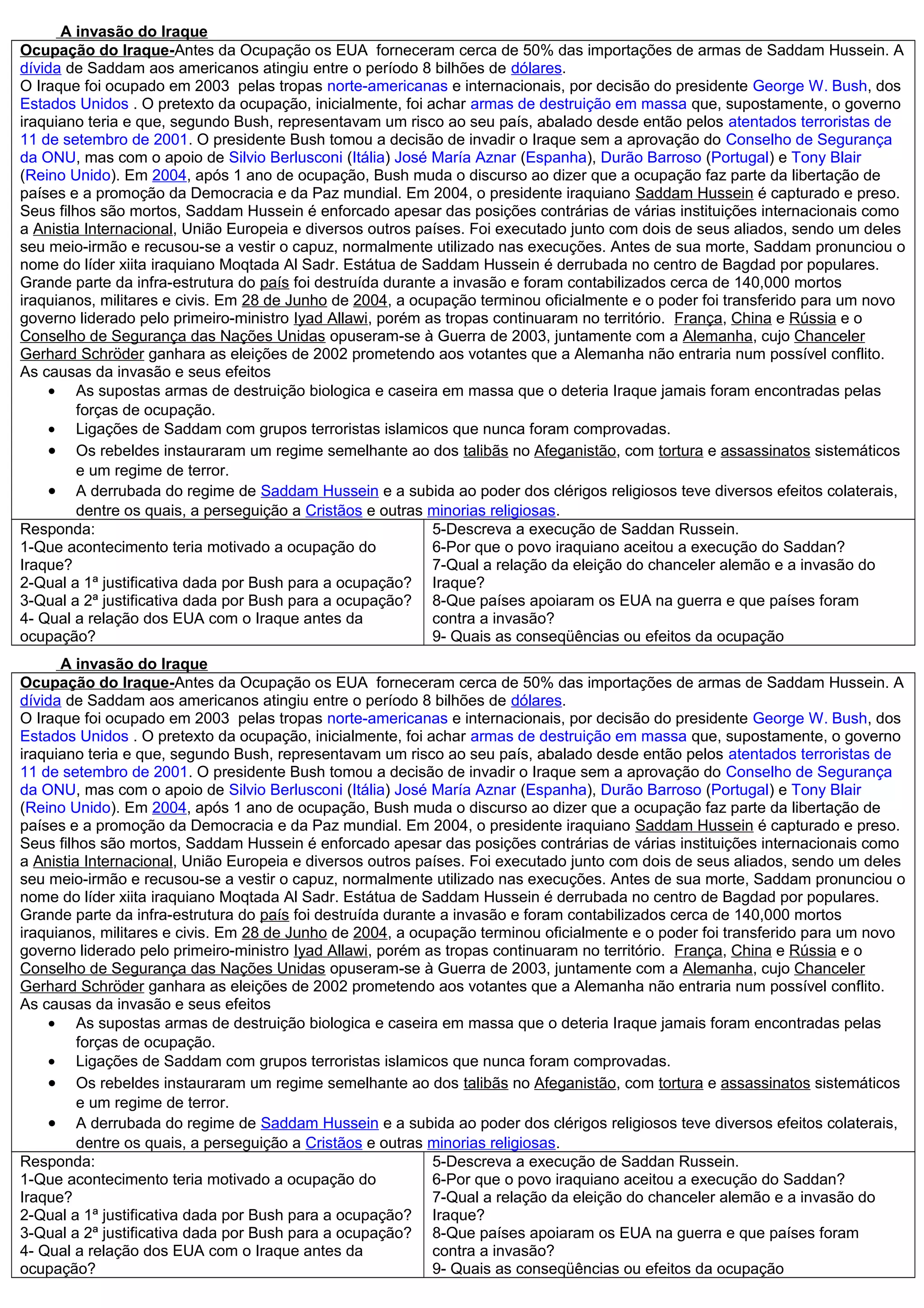 3. Posteriormente, Bush justificou a ocupação pela promoção da democracia e paz mundial.