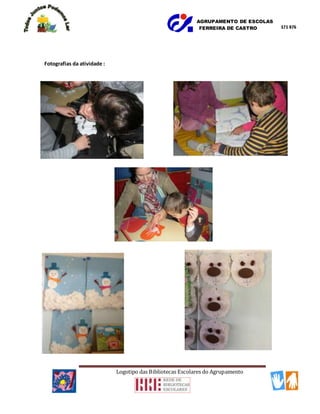 Este documento descreve uma atividade planejada para alunos da sala do regular e da UAAM da EB de Ouressa entre janeiro e março. A atividade inclui a leitura do livro "O ursinho polar" e a elaboração de trabalhos de expressão plástica sobre o inverno. O objetivo é promover o gosto pela leitura, estimular sentimentos através de histórias e ampliar o vocabulário, garantindo igualdade de oportunidades e promovendo a socialização entre os alunos.