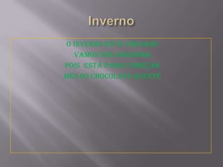 O documento fala sobre a chegada do inverno, com a neve e o frio, e encoraja as pessoas a se prepararem, se divertirem e descansarem na cama com chaminé acesa.