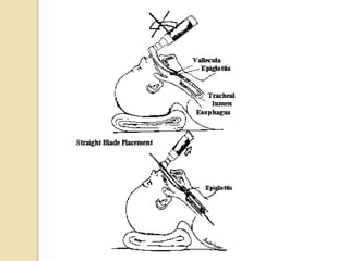 O documento descreve os procedimentos para intubação orotraqueal, incluindo a anatomia envolvida, equipamentos necessários, avaliação do paciente, técnica de intubação e possíveis complicações. A intubação é realizada para assegurar a passagem de ar para as vias aéreas através da introdução de um tubo na traquéia, geralmente em situações de oxigenação ou ventilação inadequadas ou quando necessária para determinadas cirurgias.