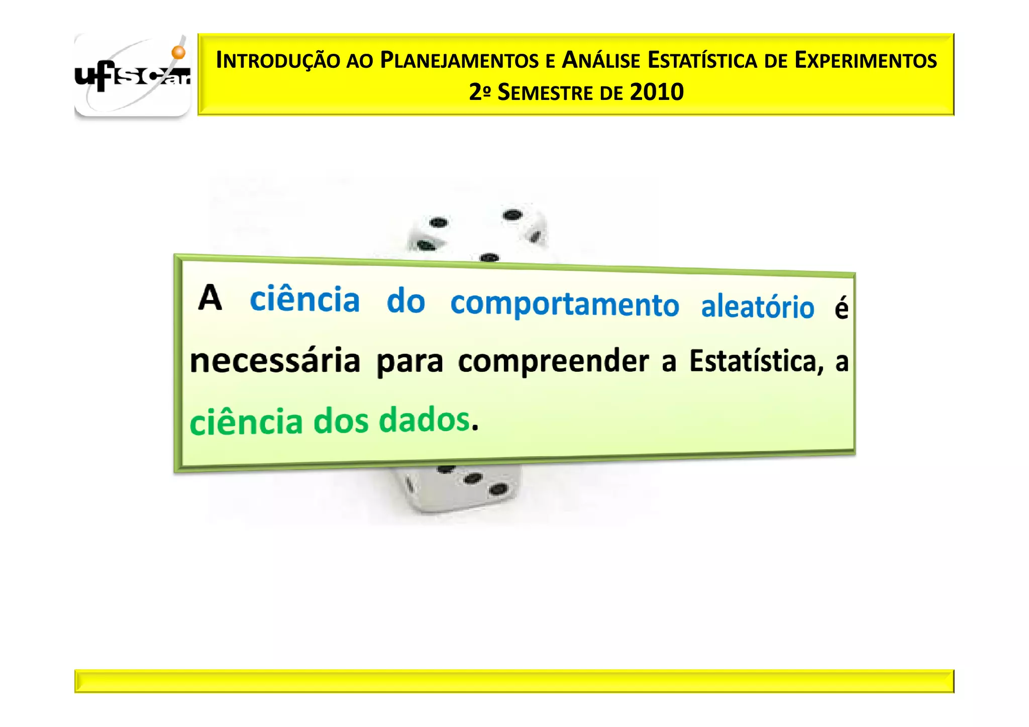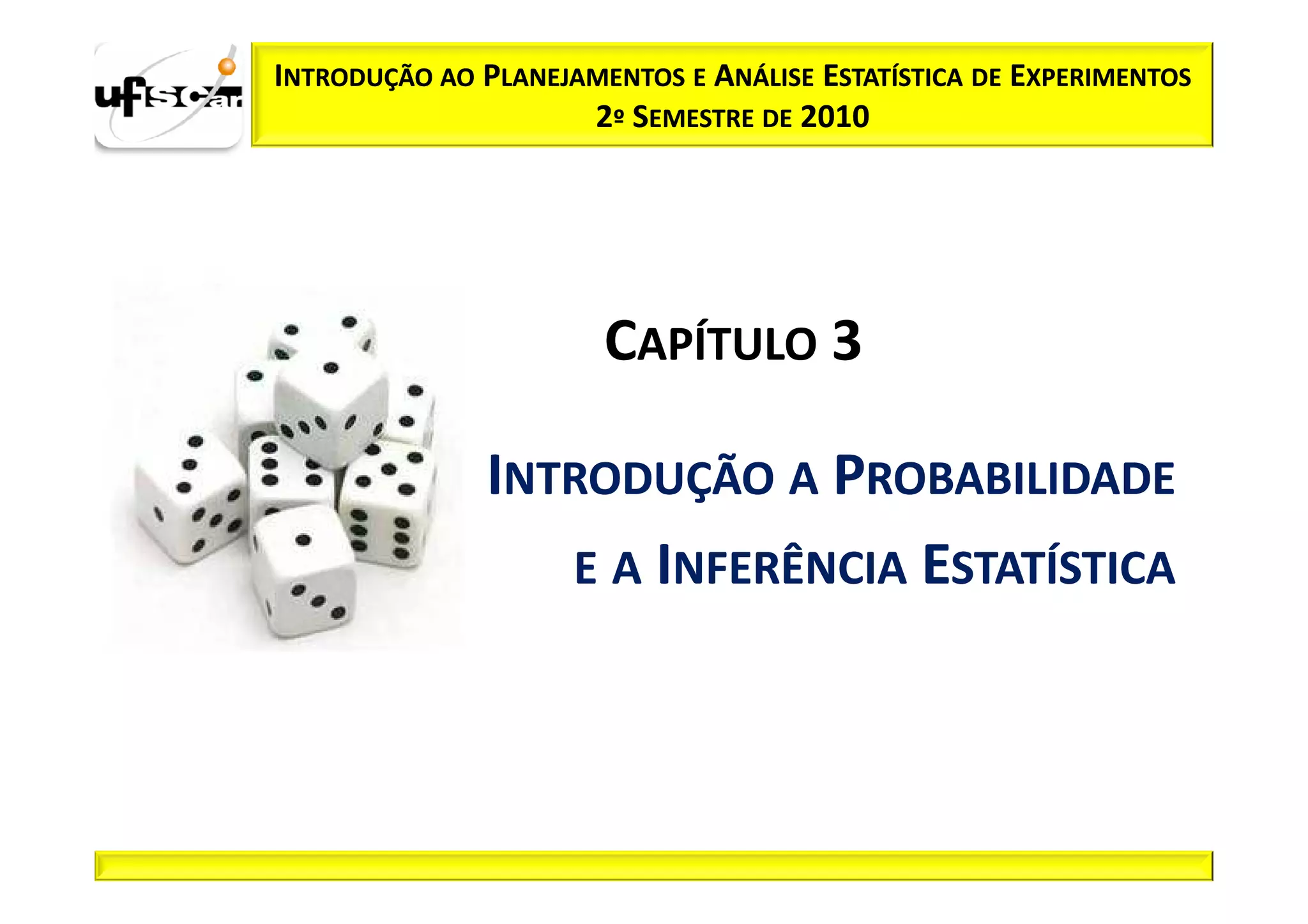 Este documento apresenta conceitos introdutórios sobre probabilidade e inferência estatística. Ele define o que é um fenômeno aleatório e distribuição regular, e usa o lançamento de uma moeda como exemplo. Também define espaço amostral, eventos, probabilidade, e propriedades como eventos disjuntos e independentes.