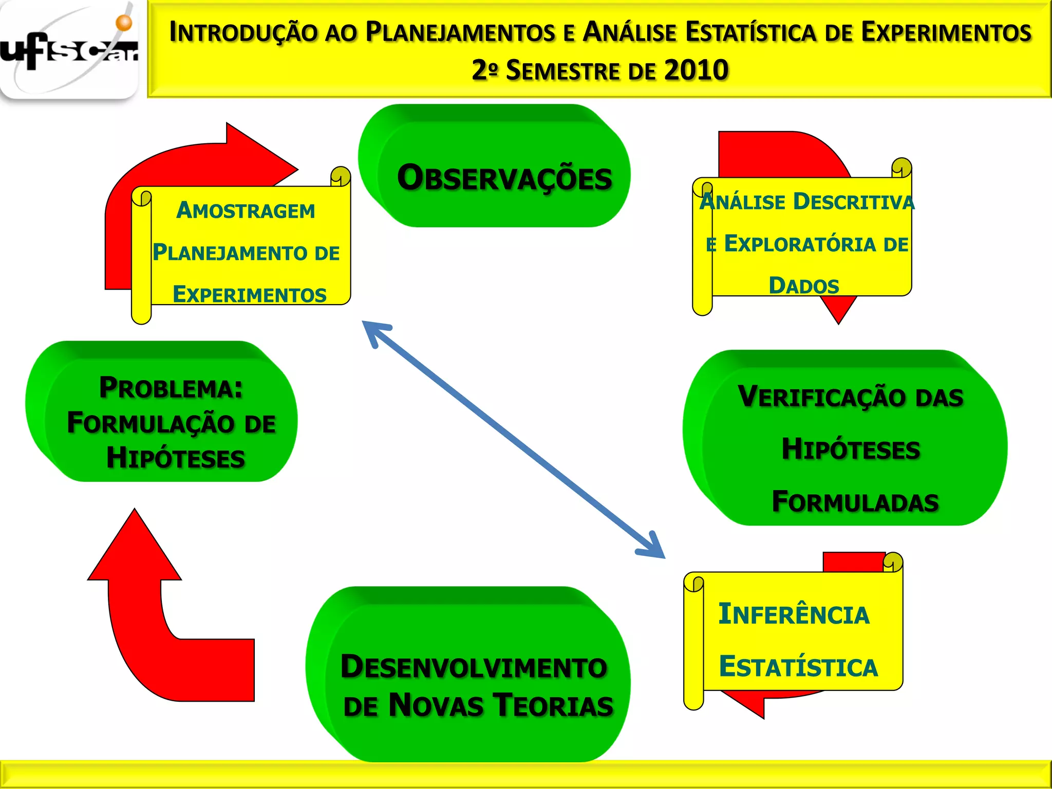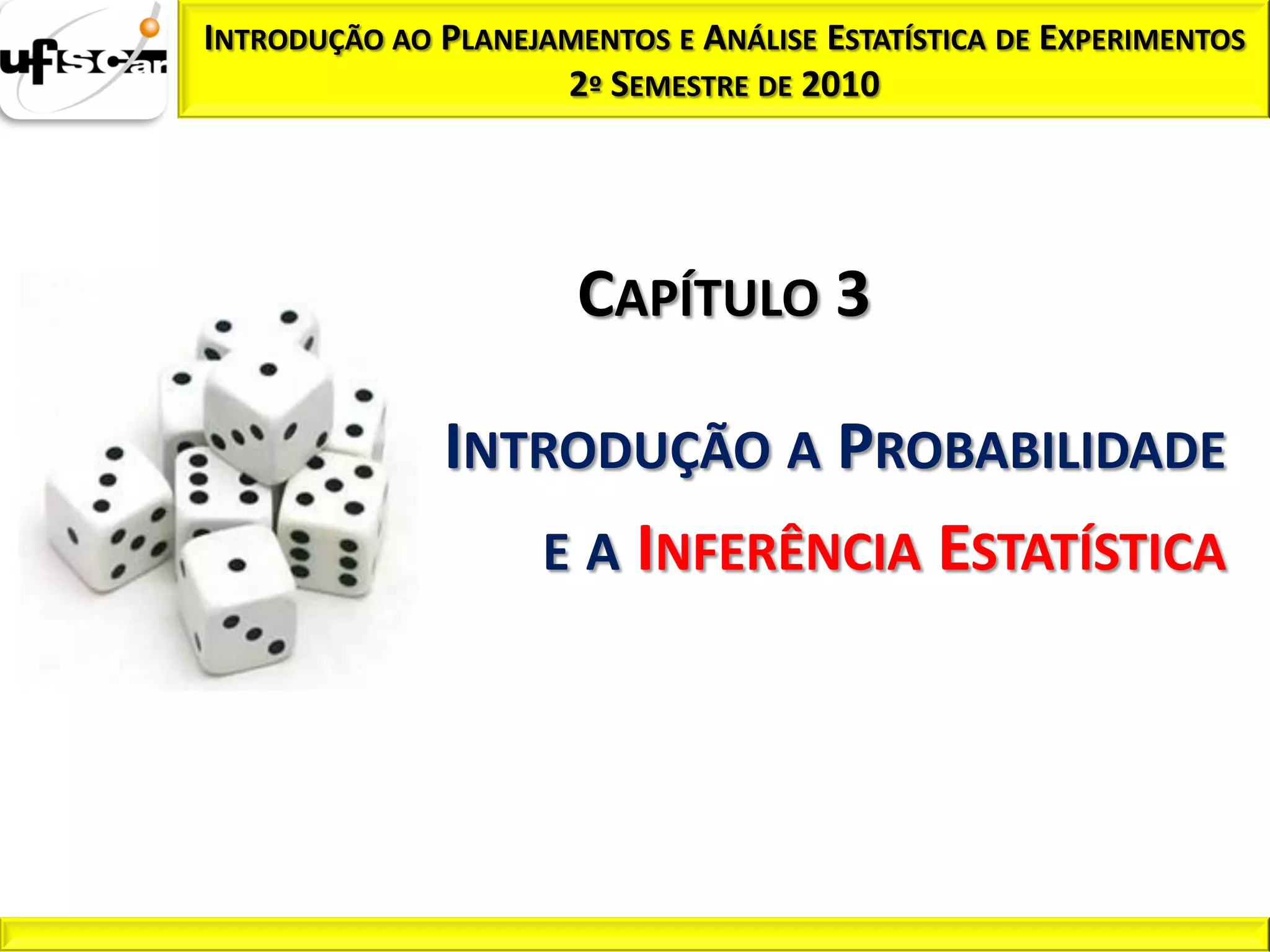 O documento aborda o planejamento e a análise estatística de experimentos, focando na introdução à probabilidade e inferência estatística, incluindo conceitos-chave como hipóteses nula e alternativa e testes de hipótese. Ele descreve como os testes são utilizados para tomar decisões com base em dados amostrais e introduz os conceitos de erro tipo I e erro tipo II. Ao final, discute a importância do tamanho da amostra e do controle das probabilidades de erro na determinação da força das conclusões estatísticas.