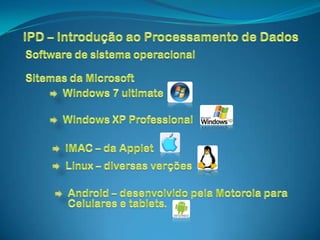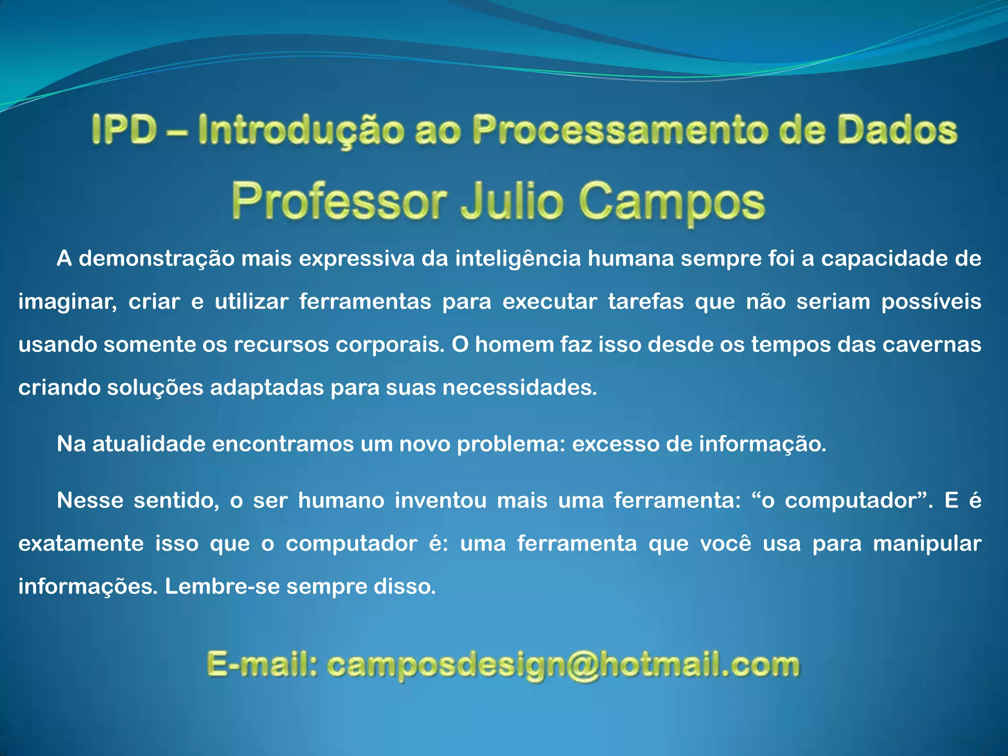 O documento discute a evolução das ferramentas humanas para lidar com excesso de informação, desde as cavernas até os computadores modernos. Os computadores são descritos como ferramentas que permitem manipular informações, da mesma forma que ferramentas anteriores permitiam executar tarefas.