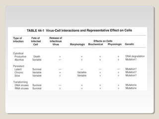 Este documento fornece uma introdução sobre vírus, abordando tópicos como perspectiva histórica, definição, estrutura, replicação, classificação e efeitos celulares de infecções virais. O documento discute a descoberta de vírus ao longo da história e fornece detalhes sobre a estrutura, replicação e classificação de vírus.