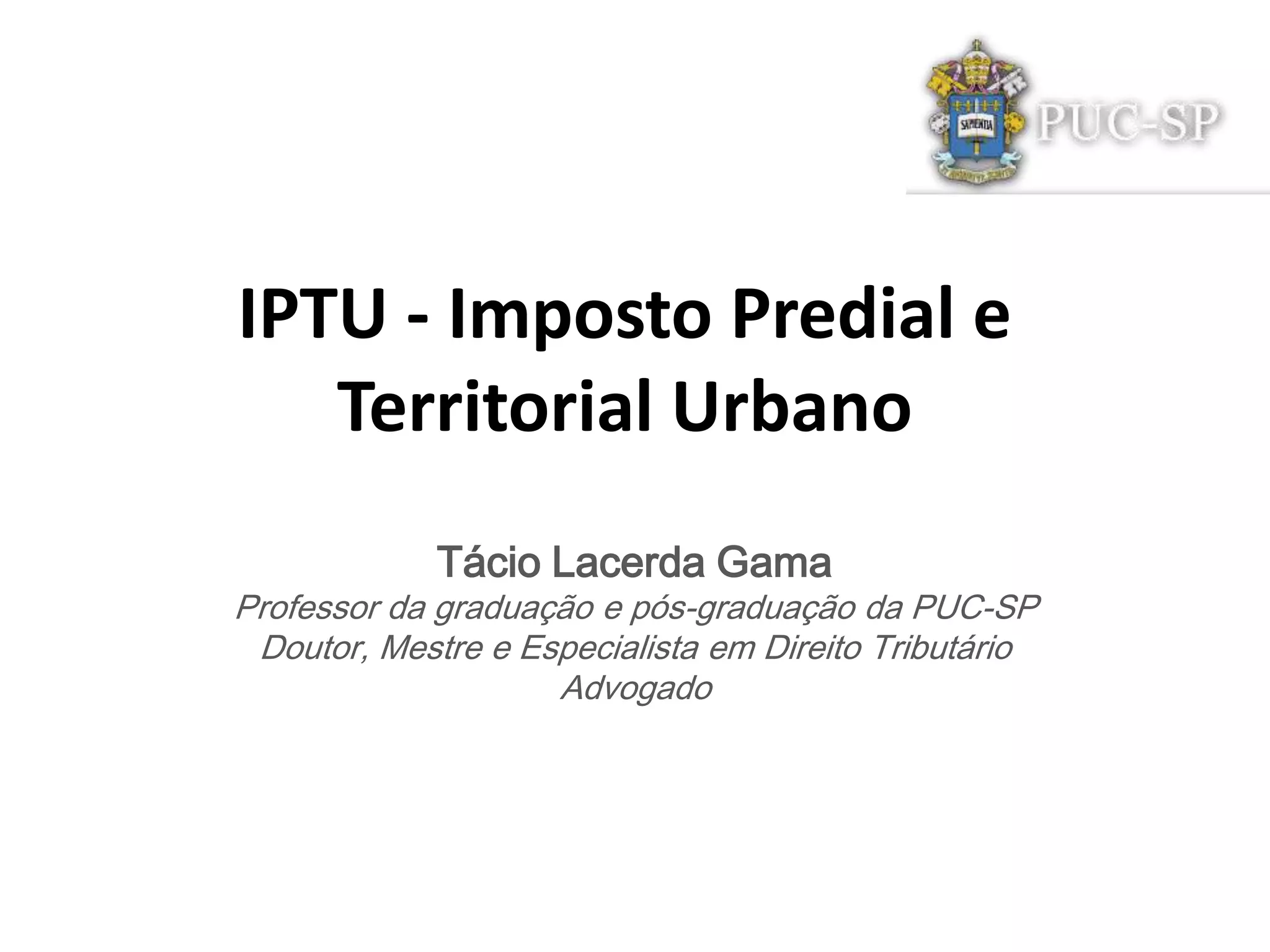 O documento discute aspectos do Imposto Predial e Territorial Urbano (IPTU). Em três frases, resume: