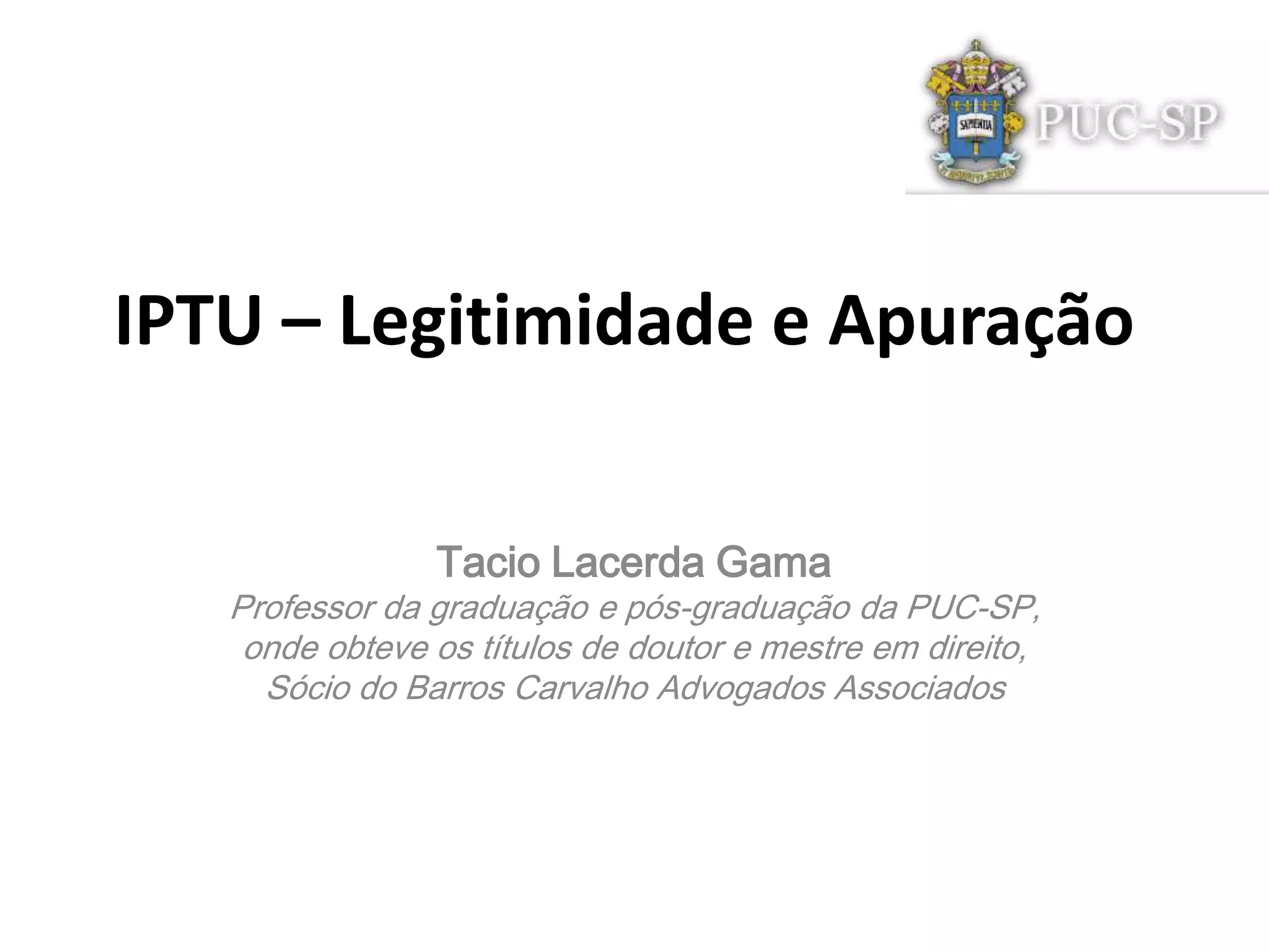 O documento discute a legitimidade e apuração do IPTU. Em três frases: