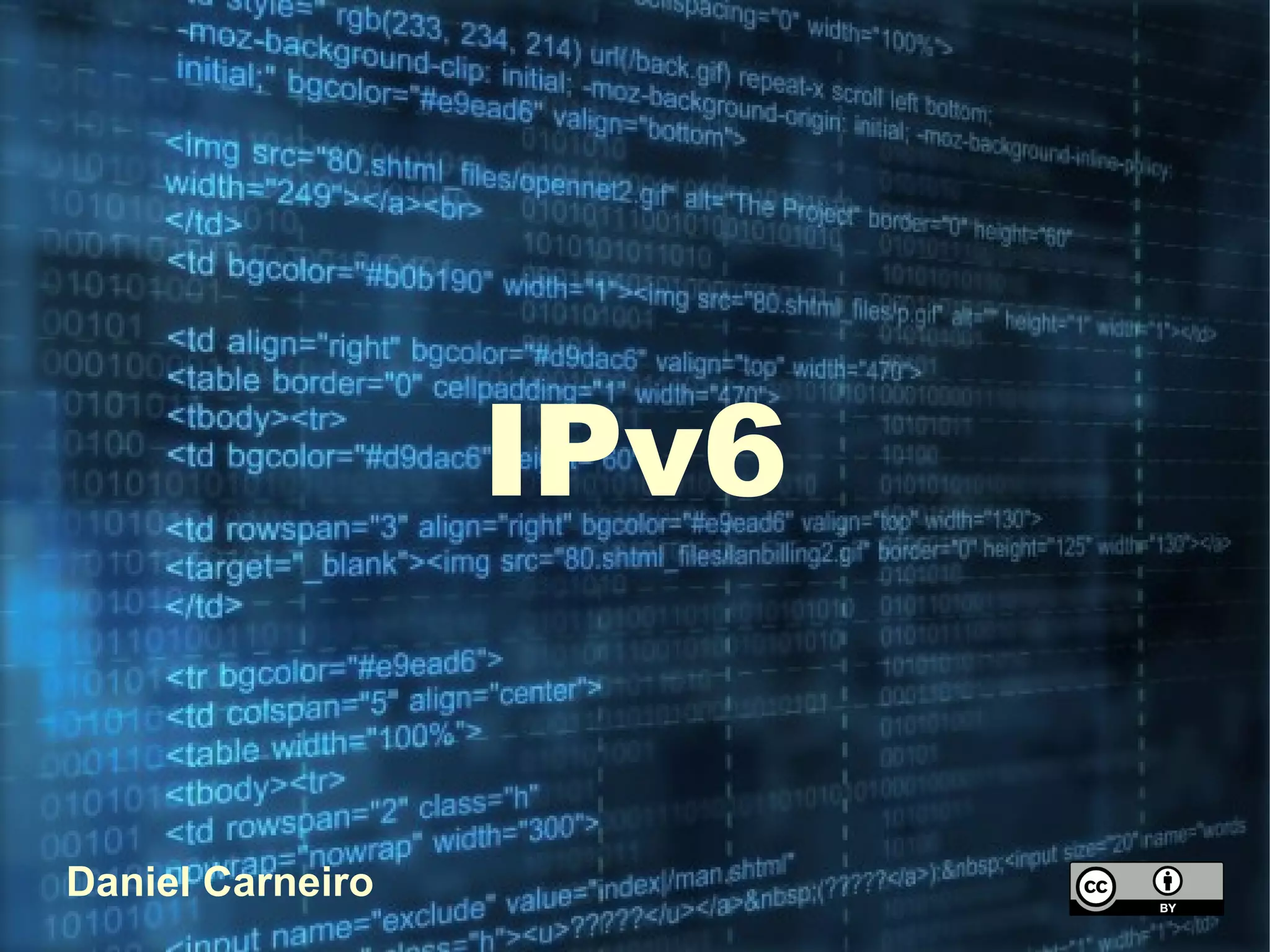 O documento discute a necessidade de adoção do IPv6 devido ao esgotamento dos endereços IPv4 disponíveis. Apresenta estatísticas mostrando o rápido crescimento da Internet e dispositivos conectados, e explica que os blocos /8 de endereços IPv4 disponíveis estão acabando, restando apenas 16 blocos, ou 6,25% do total. Também resume melhorias trazidas pelo IPv6 como autoconfiguração, melhor desempenho e mobilidade.