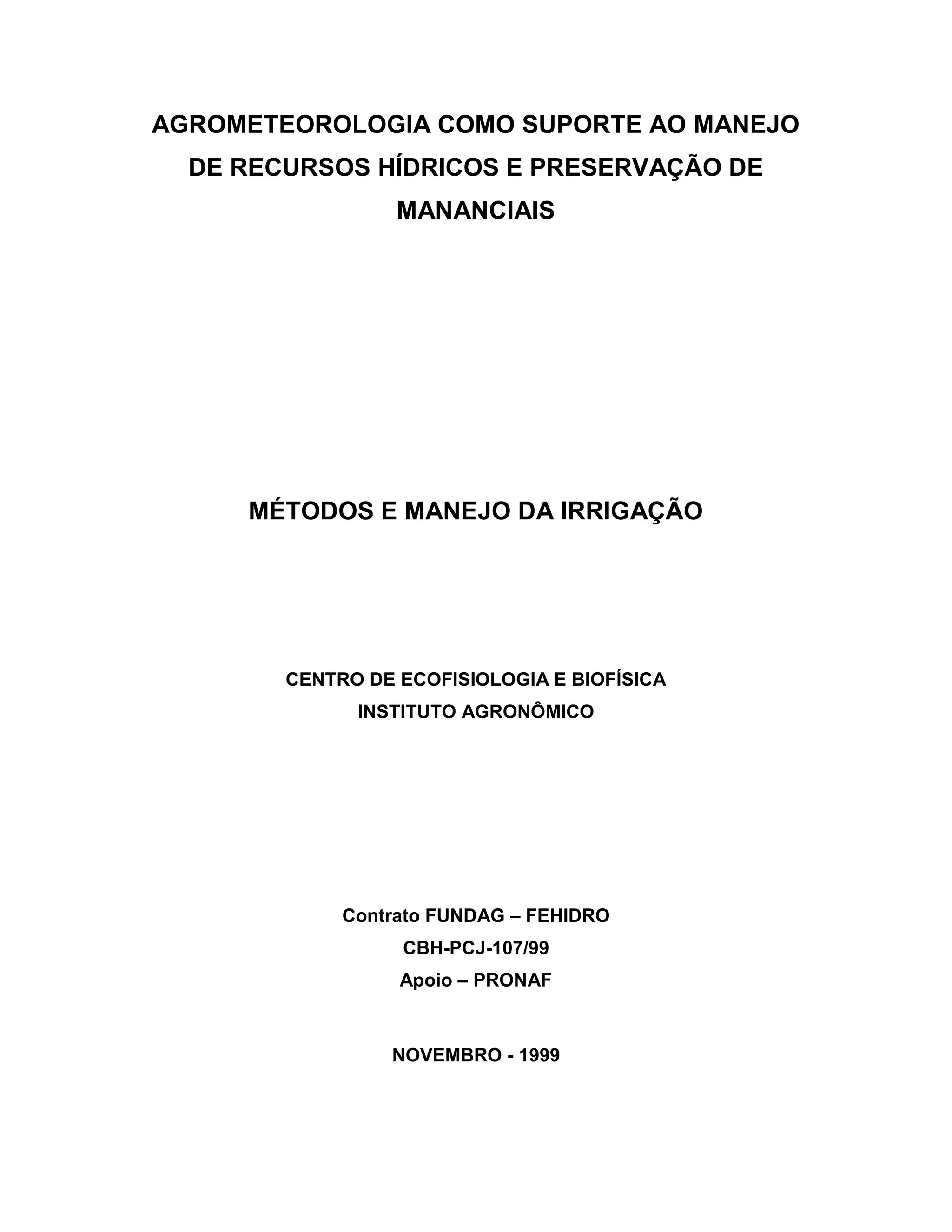 O documento discute métodos e manejo da irrigação na agricultura. Apresenta os principais métodos de irrigação como aspersão, localizada e superfície. Explica as vantagens e desvantagens de cada método e fatores a serem considerados na escolha, como disponibilidade de água, tipo de solo e cultura.