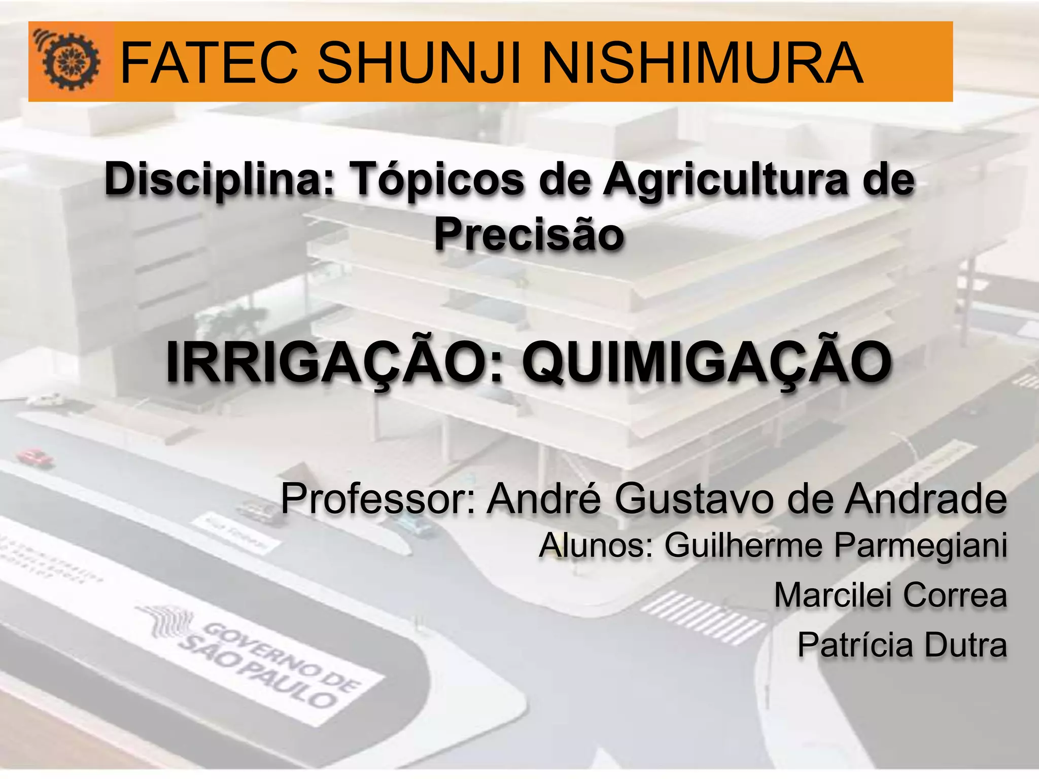 Este documento discute os métodos e benefícios da irrigação e quimigação na agricultura. Aborda os principais métodos de irrigação como superfície, aspersão e localizada. Também explica o que é quimigação e como aplicar fertilizantes e agrotóxicos via sistema de irrigação, trazendo vantagens como uniformidade e economia. Por fim, apresenta o sistema de irrigação da UFMS que monitora e recomenda irrigações de forma racional.
