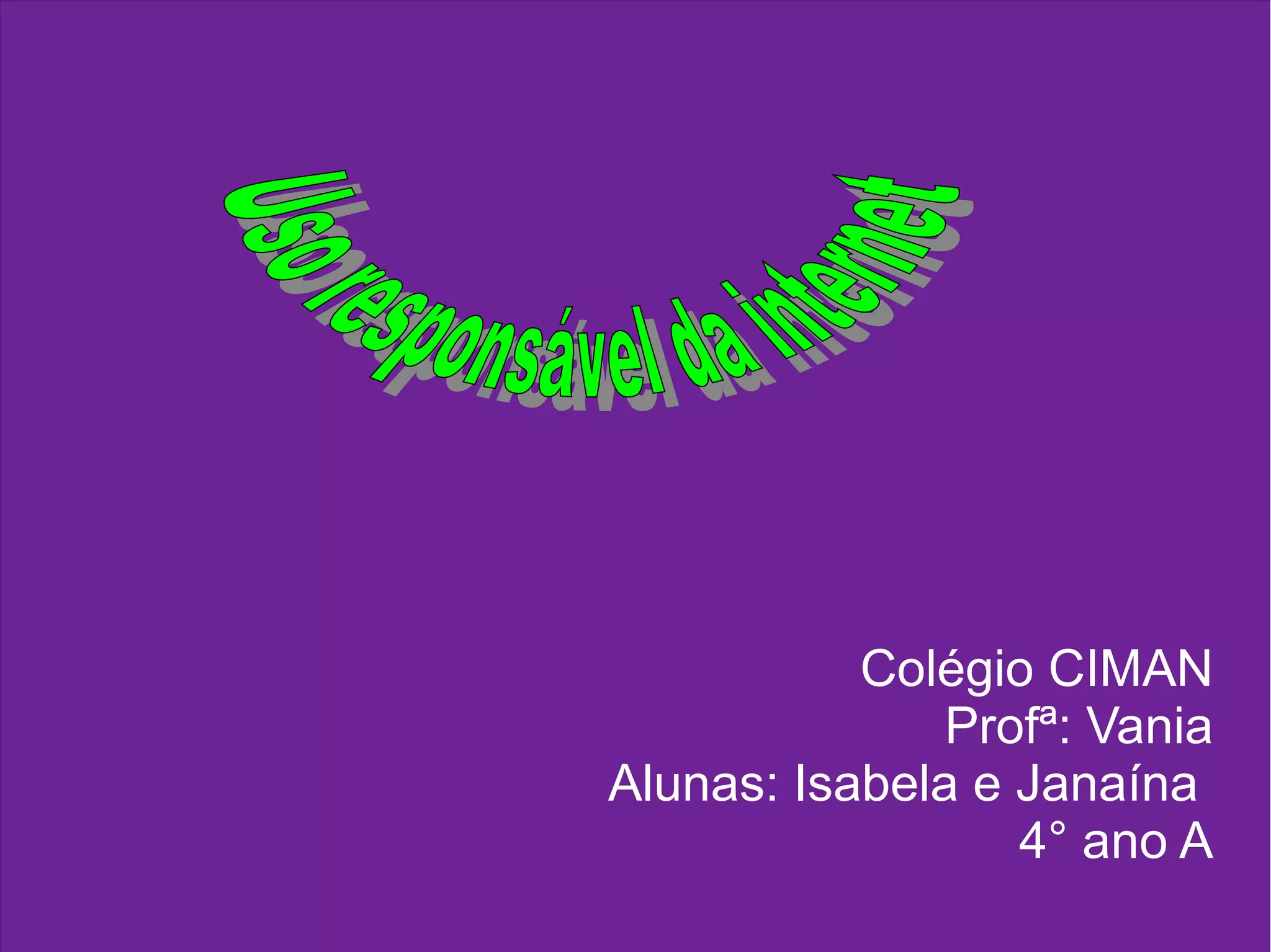 A professora Vania discutiu com as alunas Isabela e Janaína do 4° ano A sobre o uso responsável da internet, incluindo pesquisas de empregos e sites educativos de acordo com a idade delas, mas advertiu contra dar dados pessoais online, pesquisas inadequadas, usar redes sociais sem cuidado ou sites impróprios para crianças.