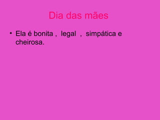 A carta escrita por Isabelle para sua mãe Caroline no Dia das Mães diz que ela é bonita, legal e simpática, gosta de brincos, bolos, sapatos e ir à praia, mas não gosta de bagunça. Isabelle termina dizendo que ama sua mãe.