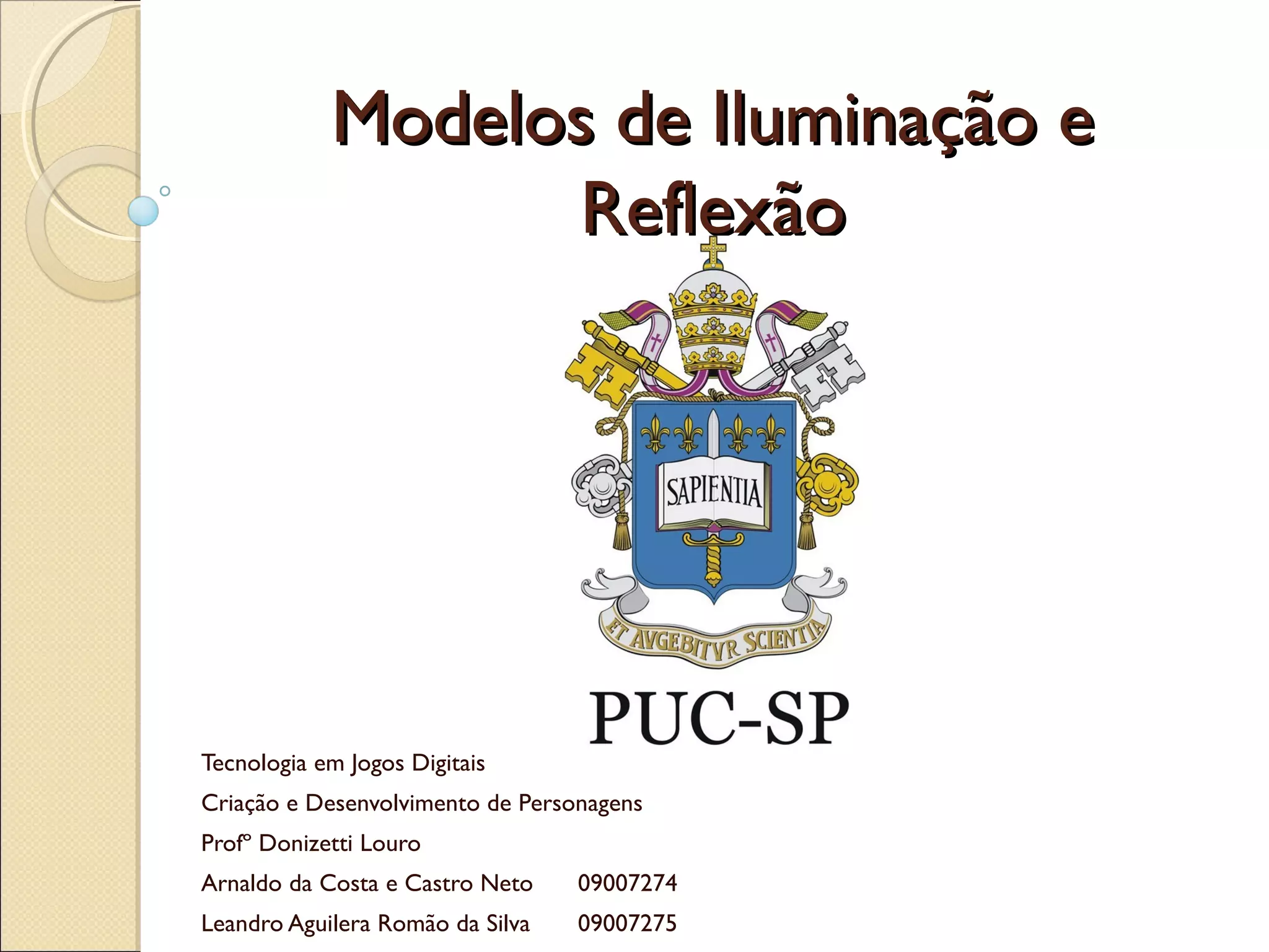 O documento aborda modelos de iluminação e reflexão em jogos digitais, destacando a importância da luz na criação de imagens realistas. Discute diferentes fontes de luz, como pontual, direcional e spot, e suas interações com objetos. Além disso, explora os modelos de reflexão e suas variações, como reflexão de espelho, metálica e borrada.