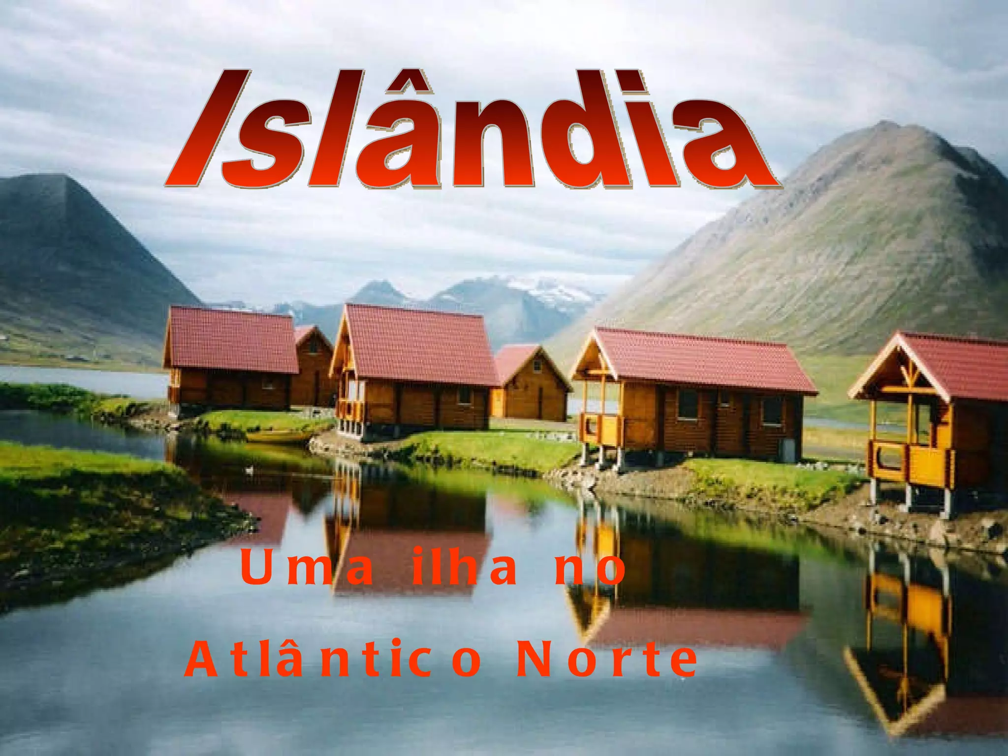 1) A Islândia é uma ilha no Atlântico Norte entre a Europa, o Oceano Ártico e o Atlântico Norte, com grandes extensões de gelo e lava.