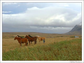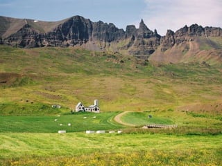 A Islândia é uma ilha no Atlântico Norte entre a Europa e o Ártico, com paisagens de gelo, lava e fiordes. Apesar de jovem geologicamente, ainda está em formação devido à atividade vulcânica. Sua população fala uma língua próxima ao nórdico e depende principalmente da pesca. A capital Reiquevique tem prédios baixos e ruas largas, e a maioria da população descende de escandinavos.