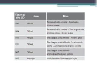 Este documento resume um blog sobre a norma ISO 14000. A norma estabelece requisitos para sistemas de gestão ambiental para ajudar empresas a monitorar e melhorar seu desempenho ambiental. A certificação ISO 14001 é a única norma certificável e reconhecida internacionalmente. A implantação da norma requer o estabelecimento de uma política ambiental e objetivos, além de monitoramento e melhoria contínua.