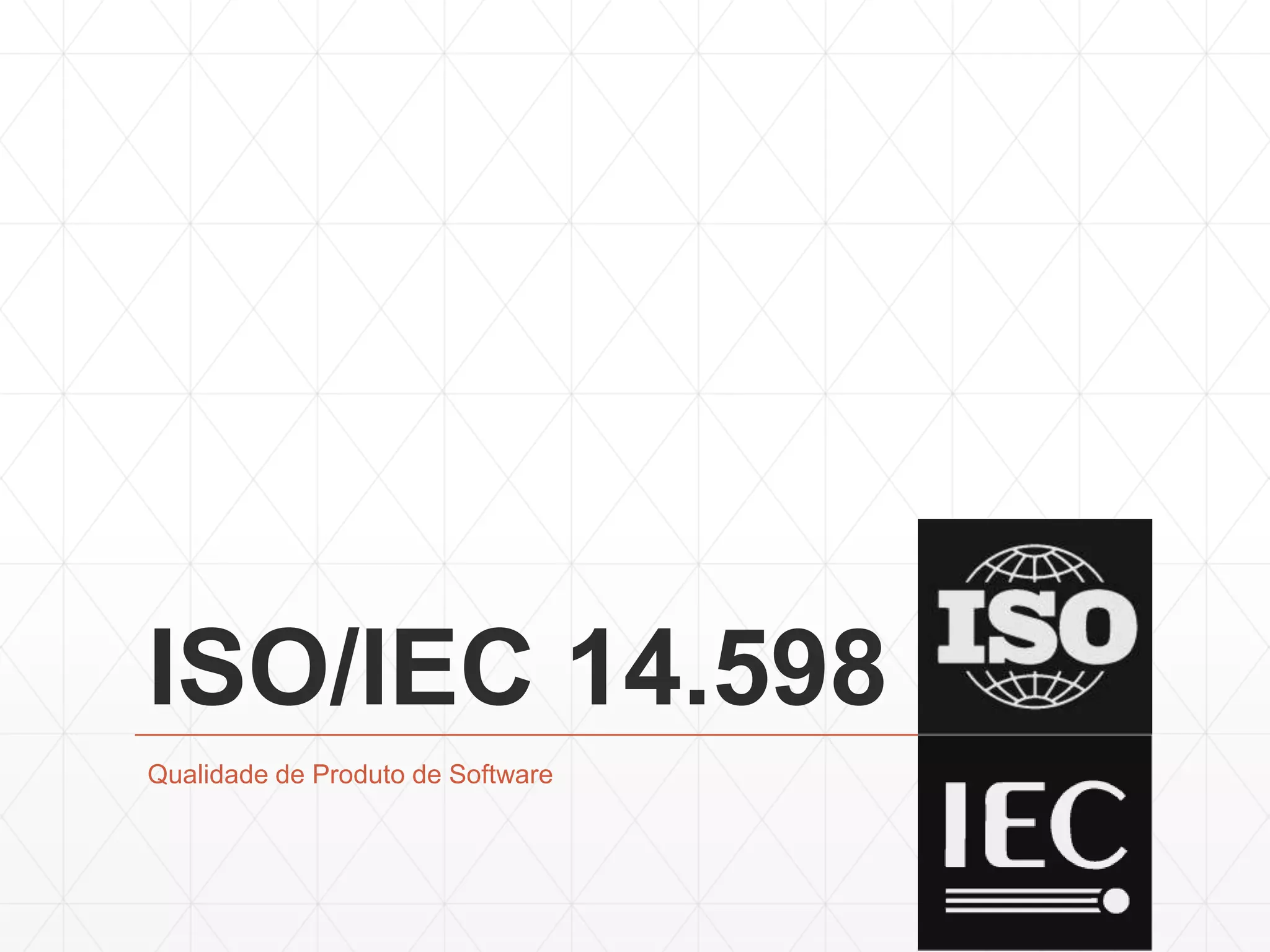 O documento descreve a norma ISO/IEC 14.598 sobre qualidade de produtos de software. A norma define qualidade como um conjunto de características que devem ser alcançadas para atender às necessidades dos usuários. A norma estabelece processos de avaliação para desenvolvedores, compradores e avaliadores, com o objetivo de assegurar que o produto atenda às necessidades explícitas e implícitas dos usuários.