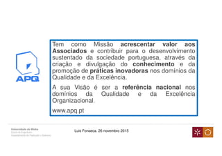 O documento descreve a norma ISO 9001:2015 sobre sistemas de gestão da qualidade. Discute as principais alterações da norma em relação à versão anterior, incluindo uma maior ênfase nos processos, riscos e partes interessadas. Também aborda os benefícios internos e externos da certificação ISO 9001 para as organizações.