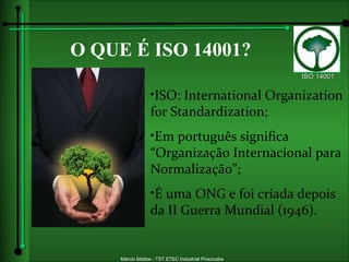 A norma ISO 14001 estabelece diretrizes para sistemas de gestão ambiental, visando controlar impactos ambientais e melhorar continuamente as operações. A certificação é realizada por organismos credenciados e traz benefícios como redução de custos e aumento da competitividade.