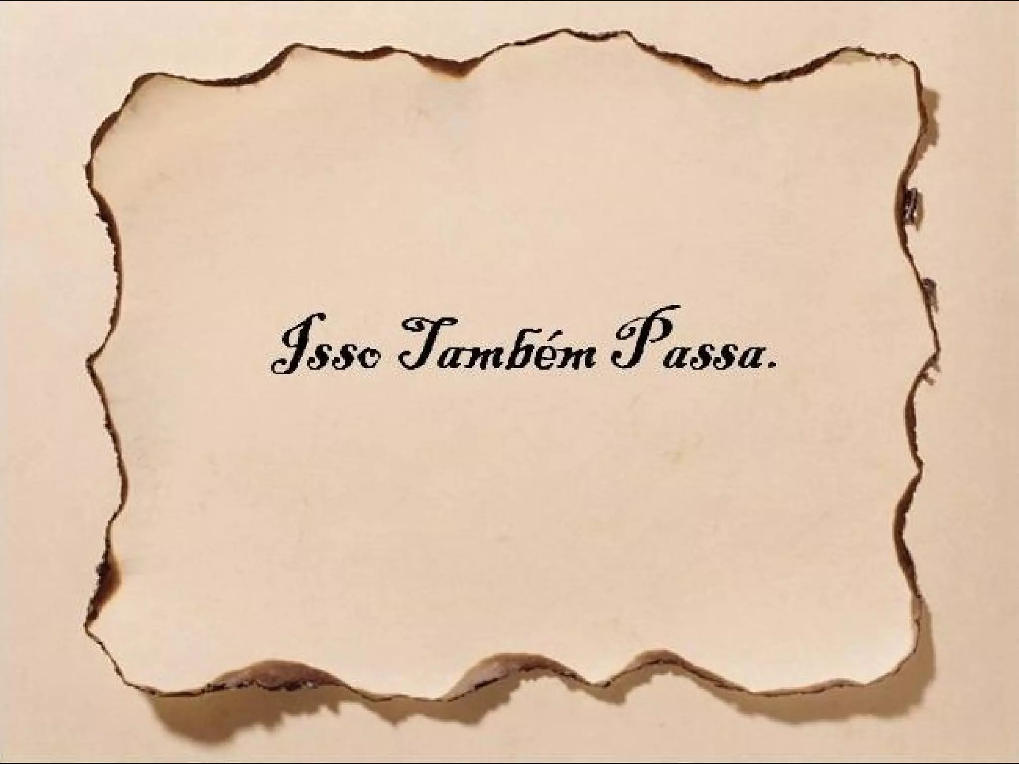O mestre explica que a frase "ISSO TAMBÉM PASSA" que está pendurada em sua cama serve como lembrete de que as dificuldades e alegrias da vida são passageiras e que é importante manter a fé, a paciência e ações positivas mesmo nos momentos difíceis. A frase traz paz ao mestre, lembrando-o de que toda situação difícil um dia irá passar.