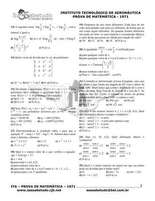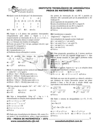 1) O documento apresenta uma prova de matemática do Instituto Tecnológico de Aeronáutica de 1971 contendo 25 questões sobre diversos tópicos como geometria, álgebra, trigonometria e progressões.