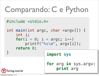 O documento discute a iteração em Python, comparando-a com outras linguagens como C e Java, e exemplifica o uso de dunder methods e compreensões de listas, sets e dicionários. Também aborda a definição de iteráveis em Python e como eles interagem com funções e estruturas de dados. O texto é voltado para programadores buscando entender melhor as capacidades da linguagem Python em relação ao sistema de iteração.