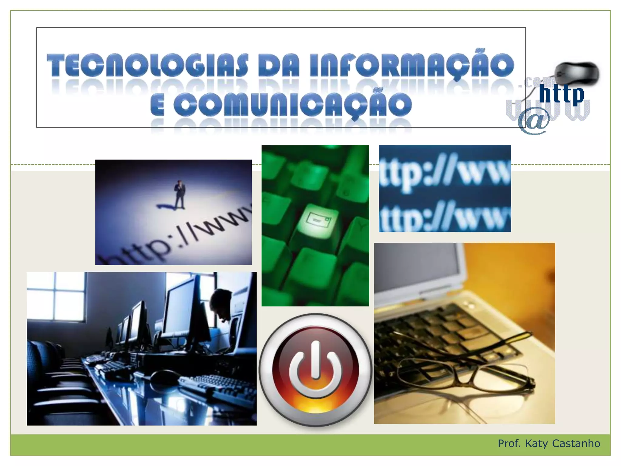 O documento discute conceitos básicos de Tecnologias da Informação e Comunicação (TIC), incluindo ergonomia, áreas de aplicação das TIC, e história do computador. É apresentada uma introdução sobre TIC e seus principais conceitos como dados, informação e informação digital. As principais áreas das TIC incluem tratamento, comunicação, telemática e controle e automação.