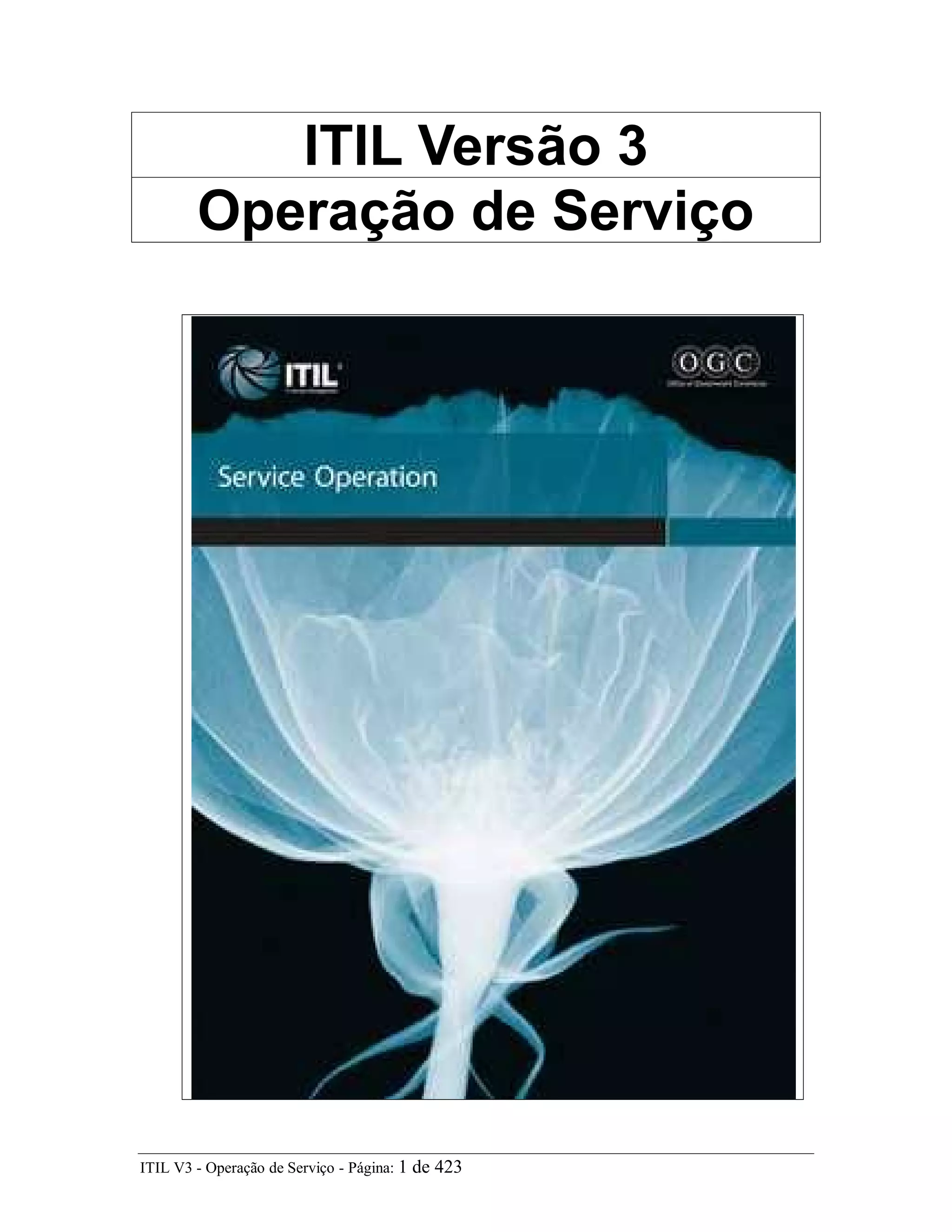 Este documento fornece um resumo do livro "ITIL Versão 3 Operação de Serviço". Ele descreve os cinco livros que compõem o Core ITIL e destaca que a Operação de Serviço é um deles. Inclui um índice com os principais tópicos abordados no livro, como gestão de eventos, incidentes, pedidos de serviço, problemas e acesso.