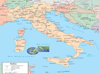 A Itália é um país localizado na Europa com uma área de 301.302 km2 e capital Roma. Sua população é de aproximadamente 59,9 milhões de habitantes e sua moeda é o Euro. A história da Itália influenciou fortemente a cultura europeia e seu desenvolvimento, com vestígios arqueológicos importantes datando de épocas pré-históricas.