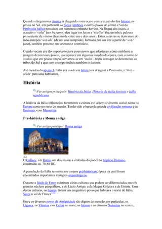 3) Atualmente a Itália é uma república democrática e membro fundador da União Europeia, com uma economia desenvolvida e alta qualidade de vida.