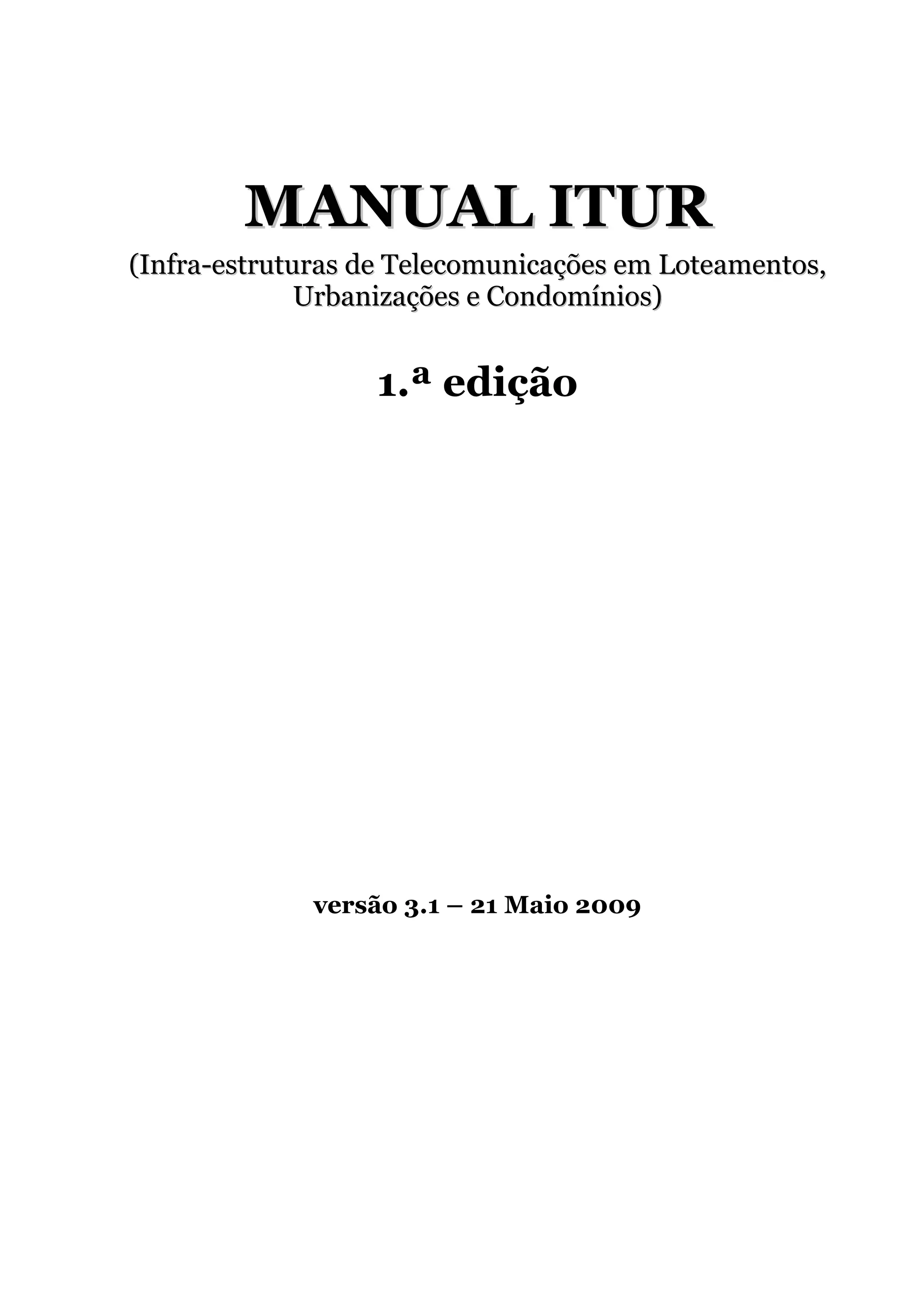Este documento fornece diretrizes e especificações técnicas para projetar, instalar e gerenciar infraestruturas de telecomunicações em loteamentos, urbanizações e condomínios (ITUR). Ele define os requisitos para redes de tubos e cabos, projeto, instalação, testes e segurança. O objetivo é regular o acesso às novas tecnologias de comunicação e informação de forma igualitária para todos os operadores.