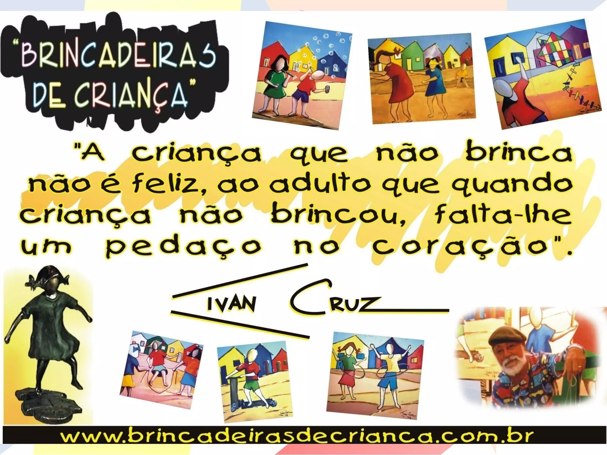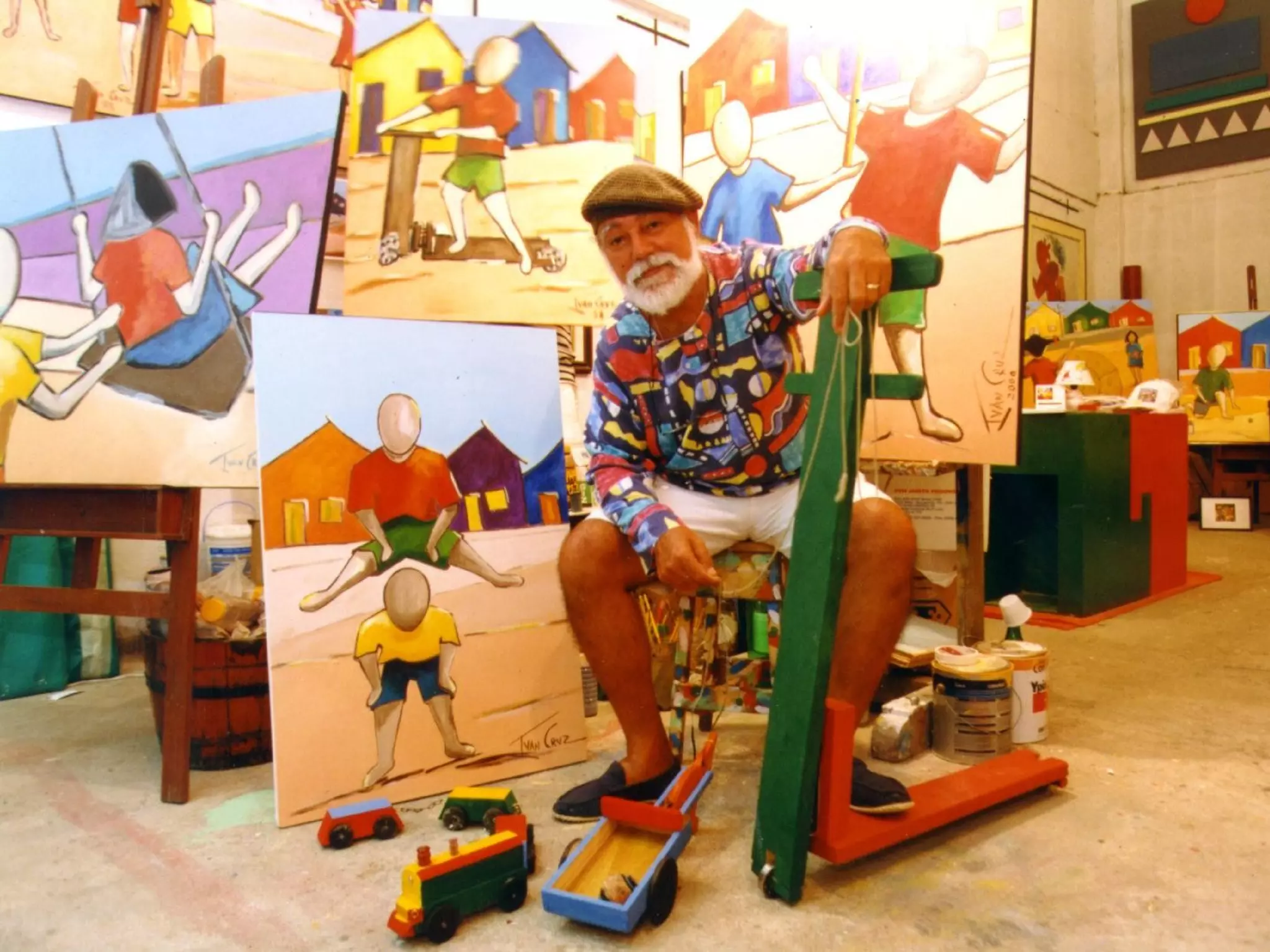 Ivan Cruz começou sua carreira artística em 1990, pintando cerca de 600 quadros que exploram mais de 100 brincadeiras da infância em uma série chamada 'brincadeiras de criança'. Formado em direito em 1970, nunca abandonou a pintura, frequentando a Sociedade Brasileira de Belas Artes e visitando importantes museus de arte. Sua obra reflete um amor profundo pela arte e pela infância.