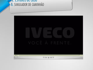O documento descreve as estratégias e iniciativas digitais da Iveco no Brasil entre 2008-2010 para promover seus produtos e serviços de forma inovadora, como lançamentos de sites, aplicativo móvel e campanhas interativas, que aumentaram significativamente o engajamento dos clientes na marca.