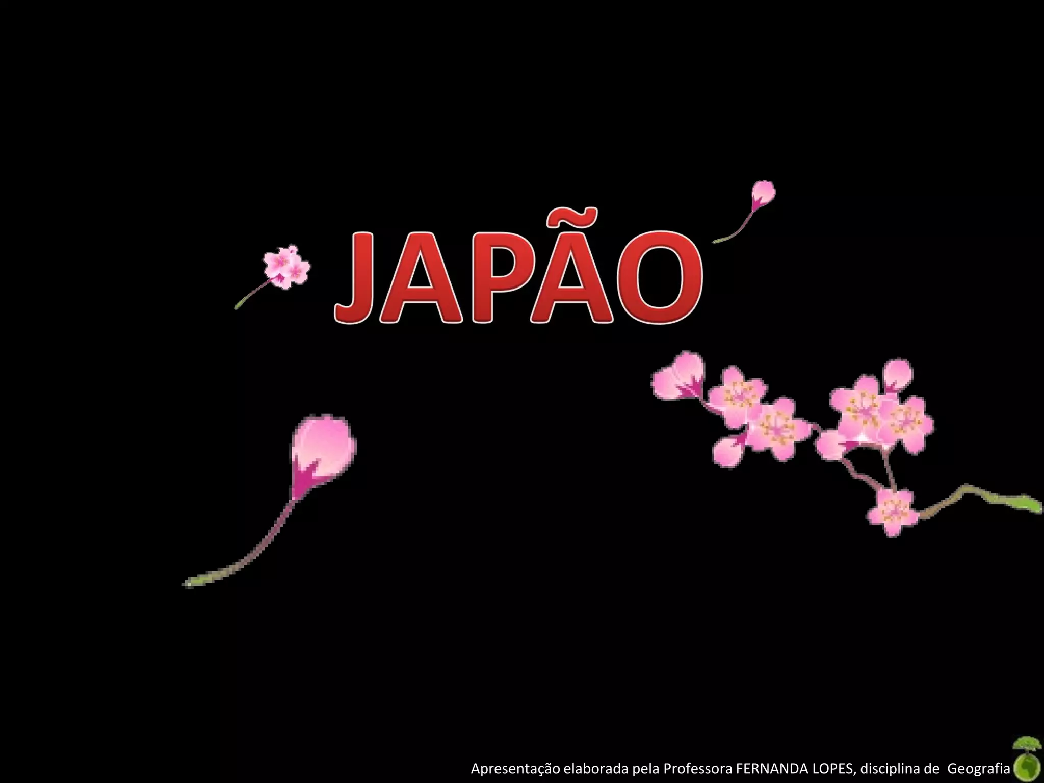 O documento descreve as principais características geográficas e históricas do Japão. O país é composto por milhares de ilhas vulcânicas localizadas na região do Círculo de Fogo do Pacífico, incluindo as quatro maiores ilhas de Hokkaido, Honshu, Shikoku e Kiushu. A atividade sísmica e vulcânica são frequentes devido ao movimento das placas tectônicas. A sociedade japonesa evoluiu de comunidades isoladas para um sistema feudal governado por