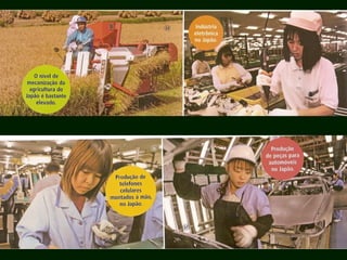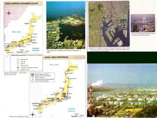 O Japão é um arquipélago montanhoso com forte atividade vulcânica e clima temperado. Sua história inclui uma antiga civilização e períodos de imperialismo que levaram a guerras. Após a Segunda Guerra, o país se industrializou rapidamente com o apoio dos EUA e hoje possui importantes empresas multinacionais, porém enfrenta desafios como o envelhecimento da população.