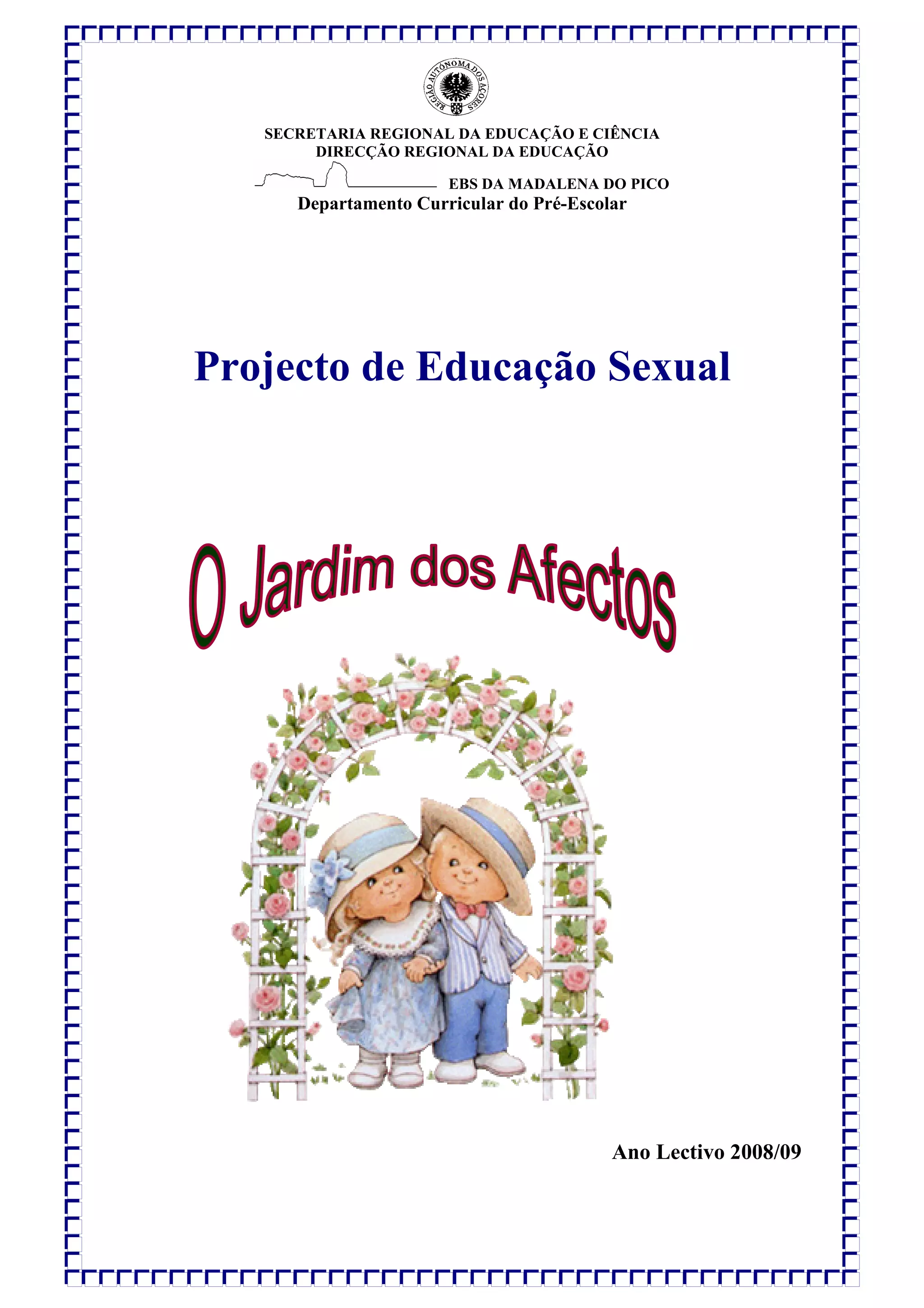 Este documento apresenta um projeto de educação sexual para crianças dos 3 aos 6 anos de idade em jardins-de-infância. O projeto aborda quatro áreas principais: 1) Conhecimento e valorização do corpo, 2) Relações interpessoais, 3) Identidade sexual, e 4) Reprodução humana. O objetivo é ensinar crianças sobre seus corpos, sentimentos, diferenças entre meninos e meninas, e origem dos bebês de uma forma apropriada para a idade.