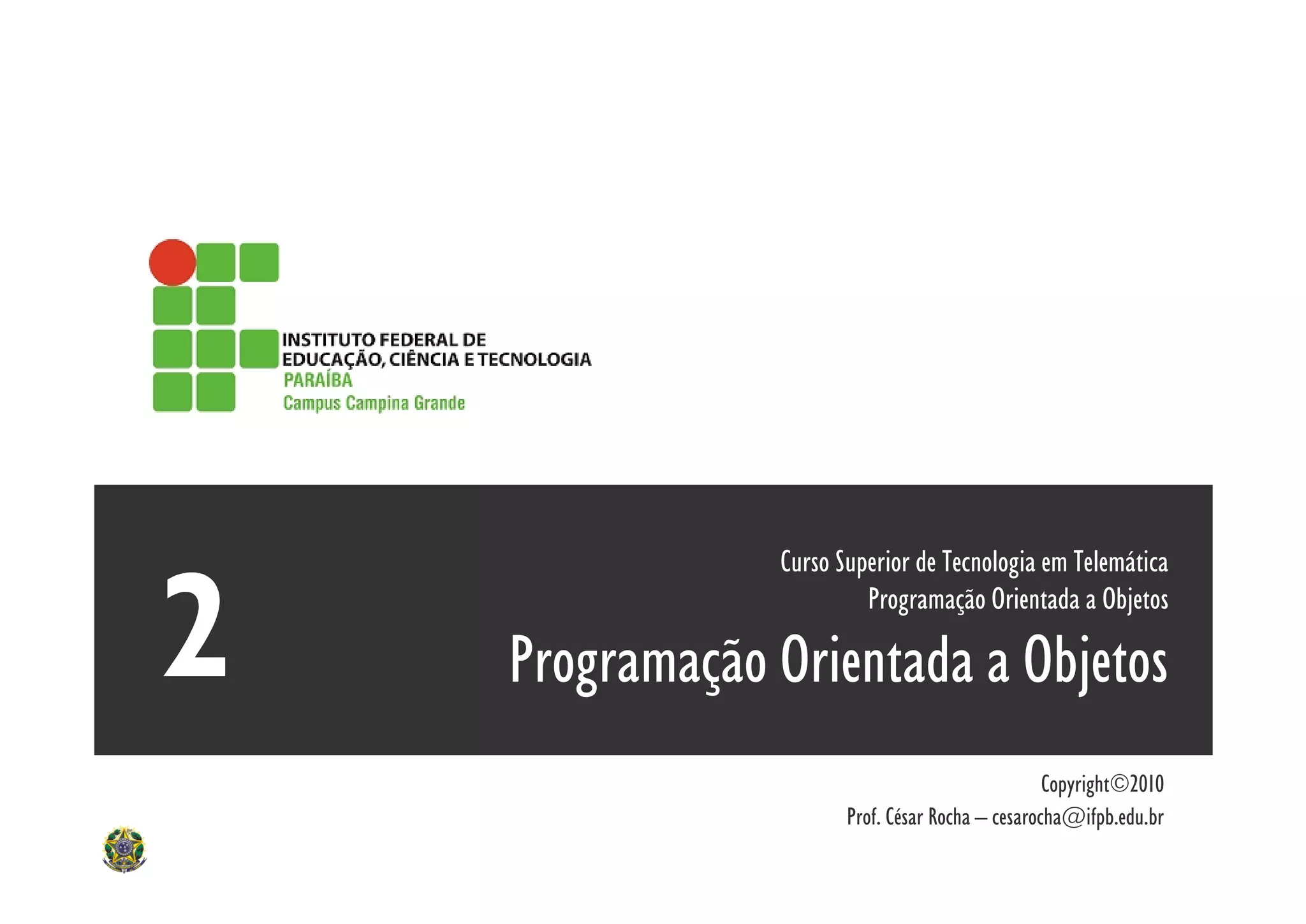 1) O documento apresenta fundamentos da programação orientada a objetos em Java, incluindo classes, atributos, métodos, herança, abstração e encapsulamento.