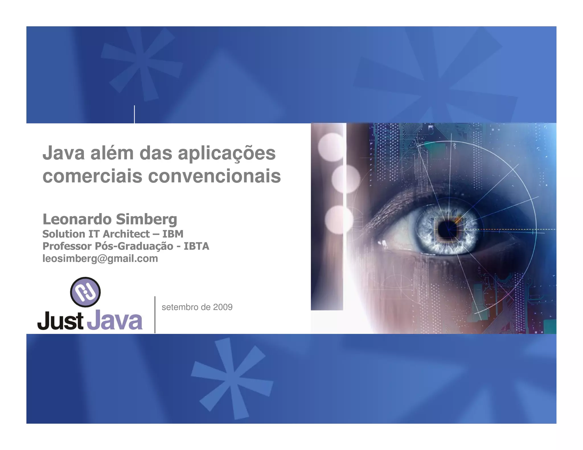O documento discute várias aplicações não convencionais para Java, incluindo Blu-ray Disc, jogos 3D, sistemas embarcados, inteligência artificial e computação em nuvem. Ele destaca como Java pode ser usado para aplicações além do desktop e web tradicionais.