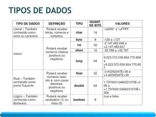 Este documento discute conceitos de programação orientada a objetos em Java, incluindo: