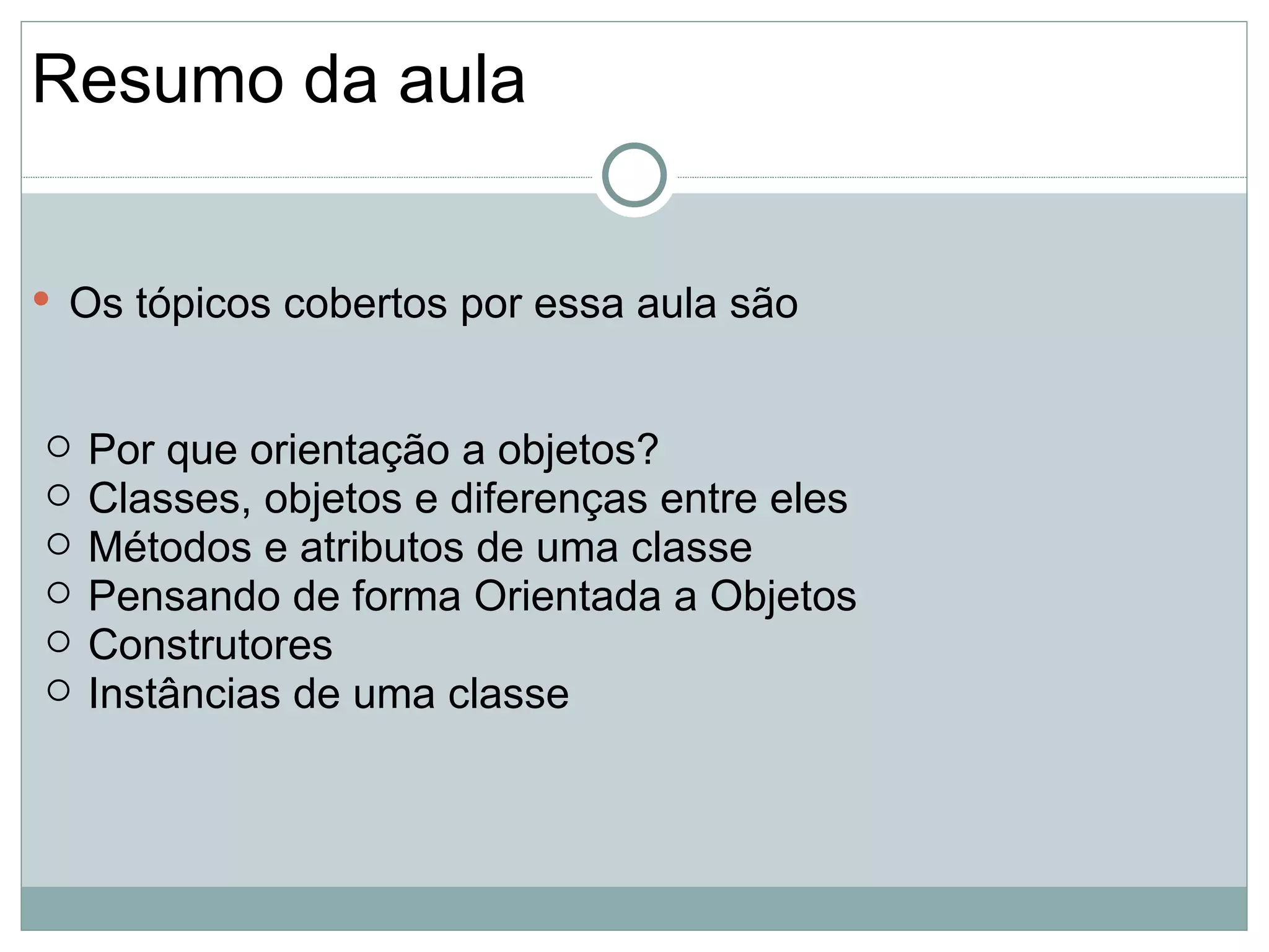 Este documento discute os principais tópicos da Orientação a Objetos utilizando Java, incluindo: 1) as diferenças entre classes e objetos; 2) como classes definem atributos e métodos; e 3) como instanciar objetos a partir de classes utilizando construtores. Dois exercícios práticos sobre sistemas de metrô e pedidos no Burger King são fornecidos para exemplificar esses conceitos.