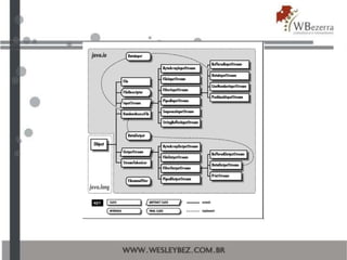 O documento apresenta uma introdução aos conceitos e classes do Java relacionadas a streams de entrada e saída, explicando a hierarquia de classes e suas interfaces principais. Alcançando tanto 'InputStream' quanto 'OutputStream', o texto detalha subclasses como 'FileInputStream', 'BufferedInputStream', e 'ObjectOutputStream', além de sugerir exercícios práticos sobre serialização de objetos. O objetivo é fornecer uma compreensão melhor das classes e suas funcionalidades para melhorar seu uso em aplicações Java.