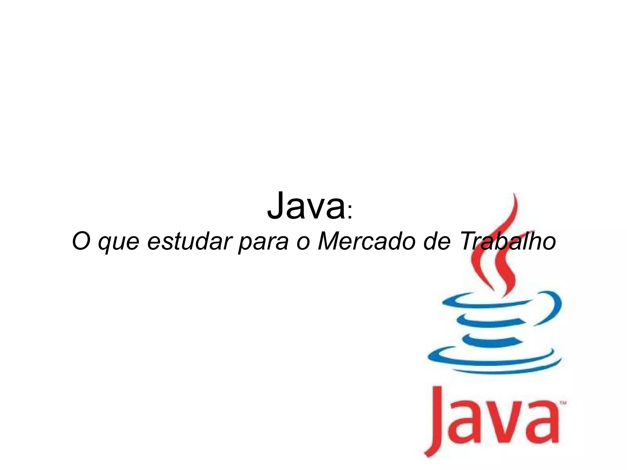 Java é uma linguagem de programação compilada e interpretada criada em 1991 que utiliza uma máquina virtual para rodar em diferentes plataformas. Para o mercado de trabalho, é importante estudar principalmente a parte web de Java, usando frameworks como JSF e Struts, além de saber Javascript. Certificações como Oracle Certified Java Programmer também são valorizadas por empresas.