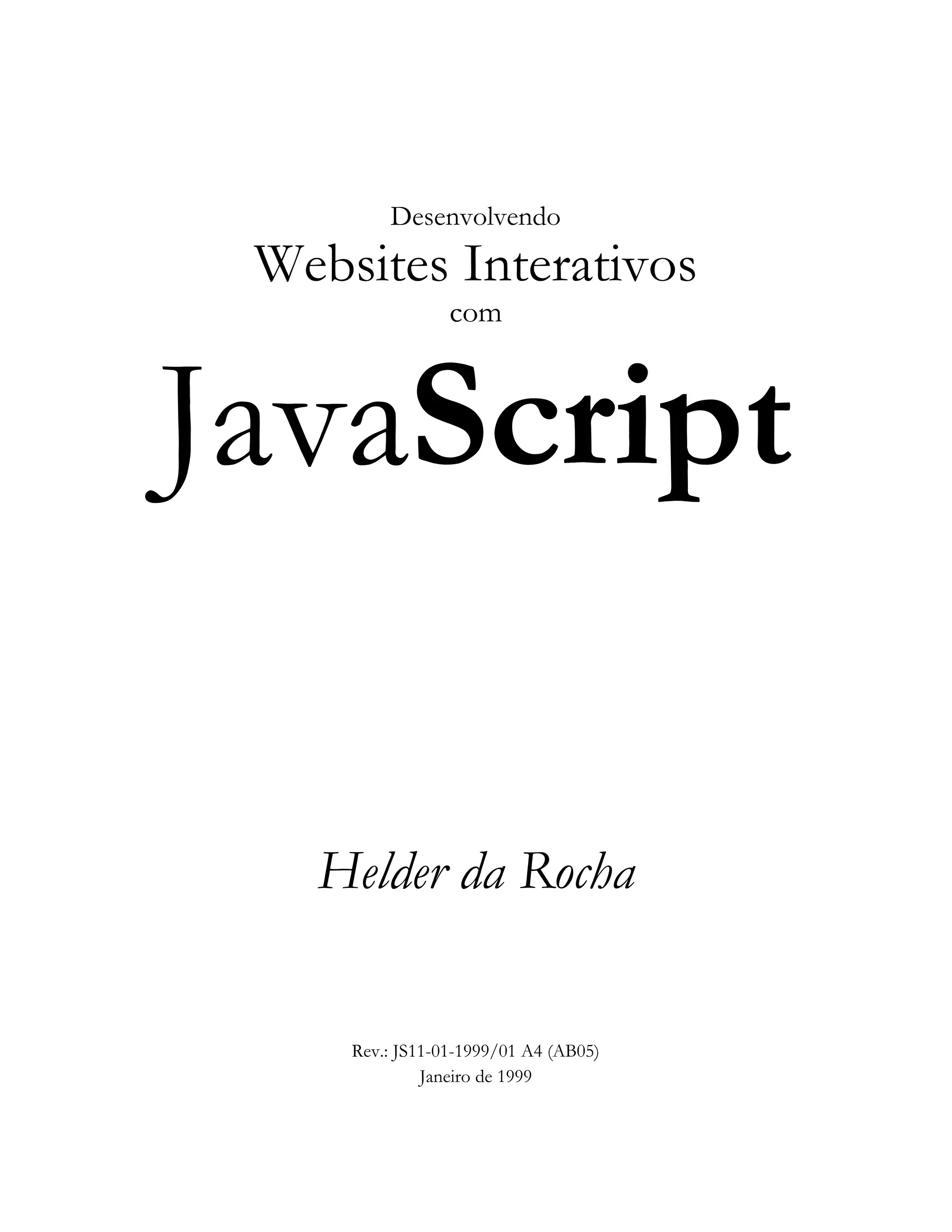 1. O documento apresenta um livro sobre desenvolvimento de websites interativos com JavaScript.