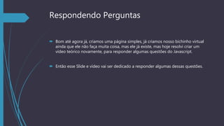 O documento é uma aula teórica sobre JavaScript, abordando eventos e seu funcionamento. Explica como eventos são gerados pelo navegador e como devem ser associados ao código para ter efeito. Além disso, menciona a sintaxe correta para uso de JavaScript em HTML e apresenta algumas funções disponíveis nesta linguagem.