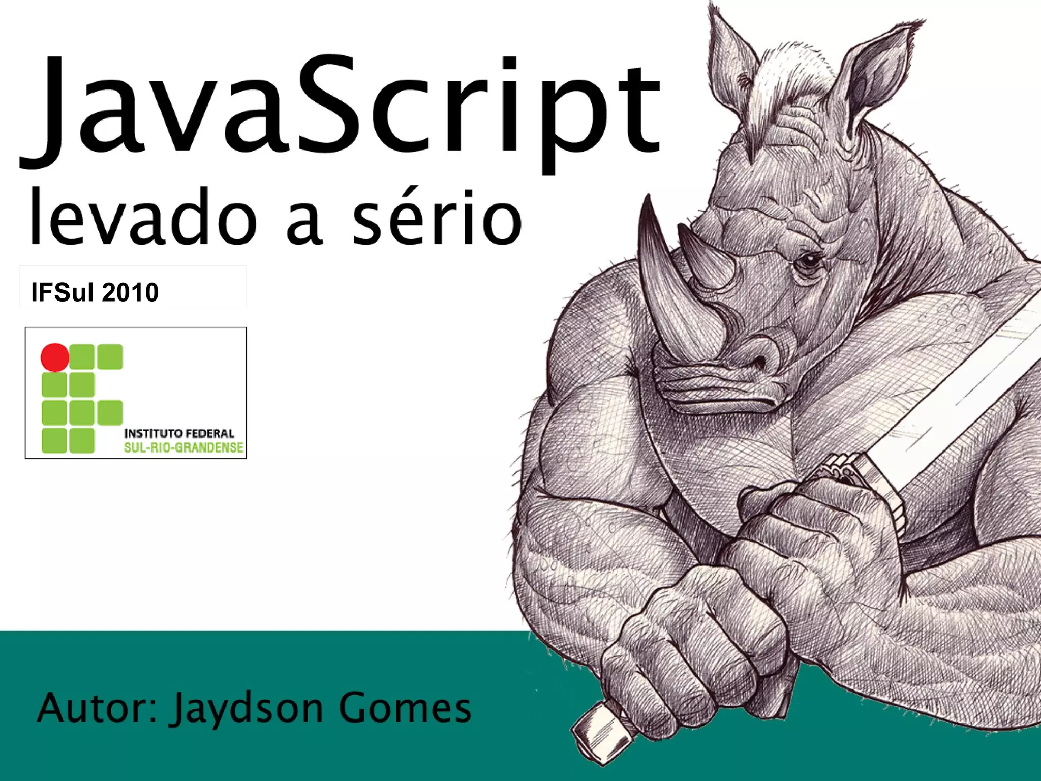 Jaydson Gomes apresentou sobre Javascript. Ele discutiu que Javascript é uma linguagem de script orientada a objetos usada para criar interfaces web ricas. Também explicou brevemente a história e origem da linguagem e suas aplicações, como Ajax e frameworks como jQuery.