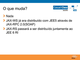JAX-WS continua disponível no Java EE 6, enquanto JAX-RS é adicionado. Web services SOAP usam JAX-WS e anotações para simplificar a criação e consumo de web services, enquanto REST usa estilos arquiteturais como o protocolo HTTP e anotações para criar serviços stateless e de alto desempenho. Frameworks como Jersey facilitam a criação de serviços RESTful.