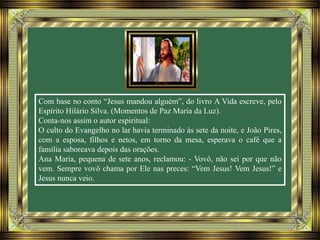 Uma menina questiona por que Jesus nunca vem quando é chamado nas orações. Seu avô explica que Jesus está presente através das pessoas necessitadas. Naquele momento, batem na porta pedindo esmola em nome de Jesus. A menina acredita que Jesus enviou alguém. Eles acolhem o mendigo e refletem sobre a importância da caridade.