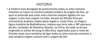 O jiu-jitsu tem suas origens ligadas à lenda do fundador do zen Bodhidharma no Mosteiro Shaolin na China, de onde teriam se originado vários estilos de artes marciais orientais. As regras do jiu-jitsu permitem golpes que imobilizam, estrangulam ou torcem articulações, mas proíbem golpes desleais como morder ou atingir órgãos genitais.