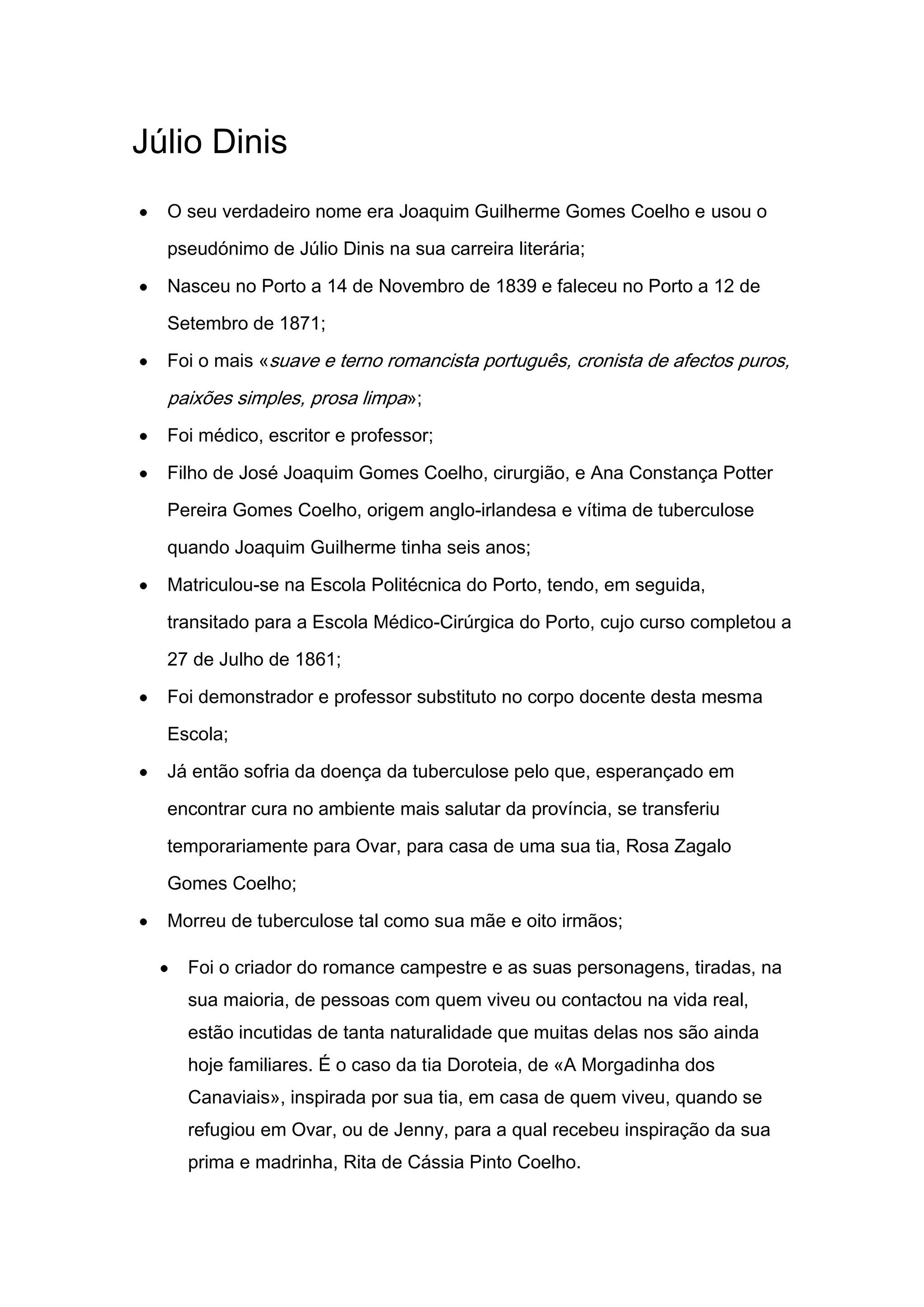 3) Considerado um escritor de transição entre o romantismo e o realismo, Júlio Dinis retratou a vida simples do campo e os sentimentos humanos de forma naturalista.