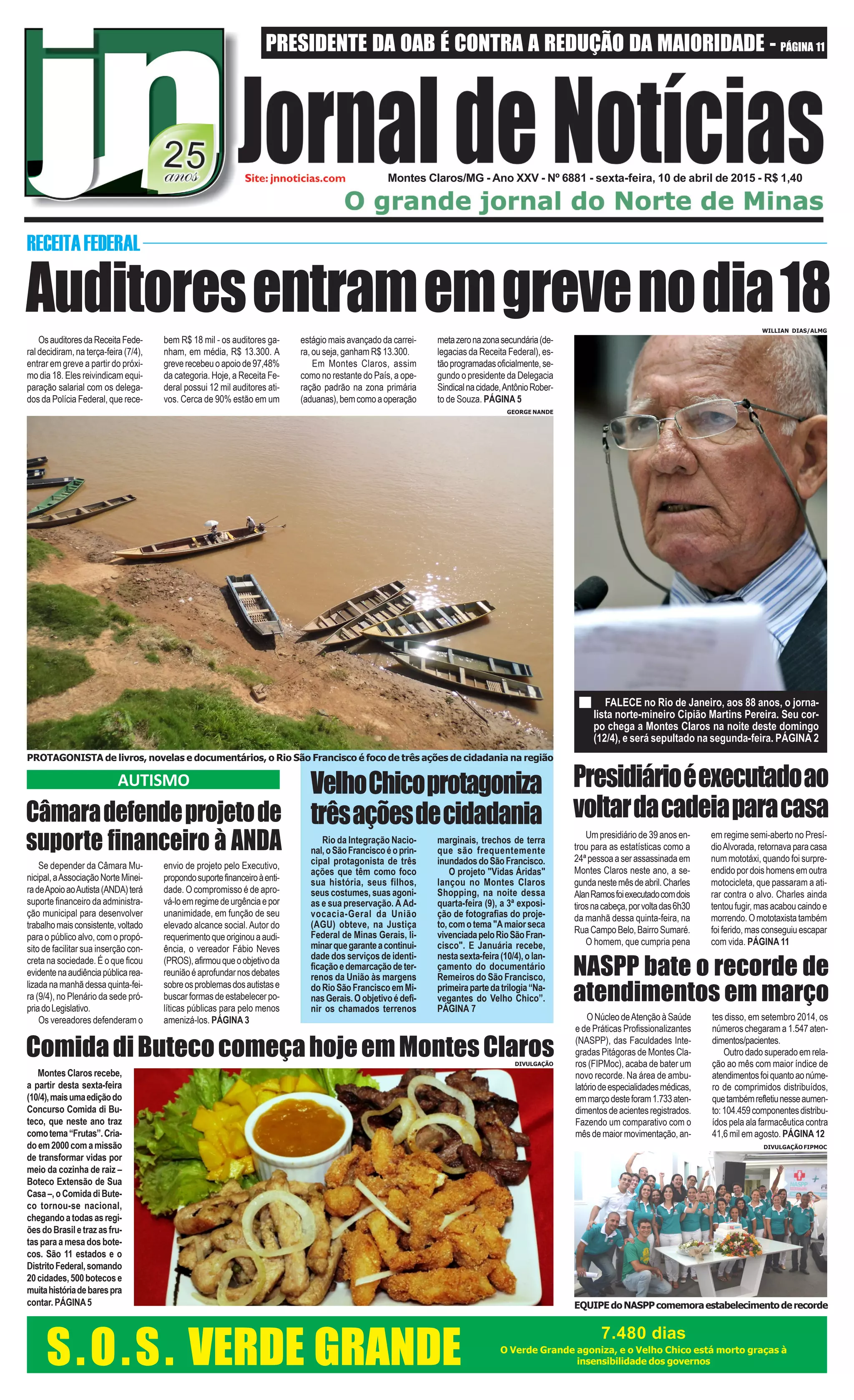 Auditores da Receita Federal entram em greve no dia 18 reivindicando equiparação salarial com delegados da Polícia Federal. Presidente da OAB é contra a redução da maioridade penal. Câmara Municipal defende projeto de suporte financeiro à associação que apoia autistas.