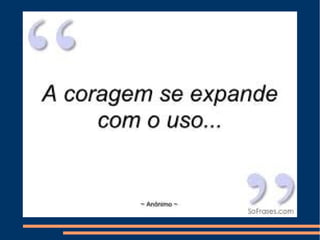 Coragem pode ser dividida em física e moral e refere-se à habilidade de confrontar medo, dor, perigo e incerteza. Pessoas corajosas agem mesmo com medo. Coragem é a confiança que permite aos homens enfrentarem desafios e situações difíceis, lutando contra medos e problemas. Coragem é a primeira qualidade humana pois garante as demais.
